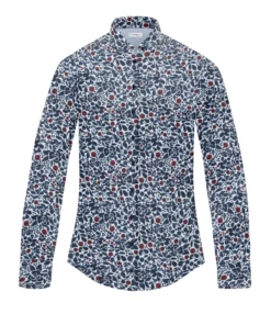 Stretch-Bluse SOPHIE mit Blumenmuster in Blau (Art. 2017D-S)