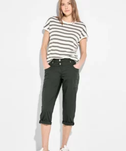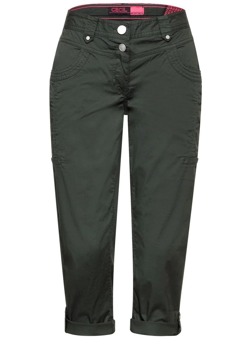 Die 3/4 Papertouch Hose im Style New York von CECIL für Damen ist eine Cargohose mit Turn-Up Möglichkeit. Dekorative Nähte unter den Taschen und Fake Seitentaschen verleihen ihr eine ansprechende Optik. Das Material aus Baumwolle mit Stretchanteil bietet Komfort und Bewegungsfreiheit. Diese Hose ist perfekt für einen lässigen und dennoch stilvollen Look und ein vielseitiges Kleidungsstück für den Alltag.