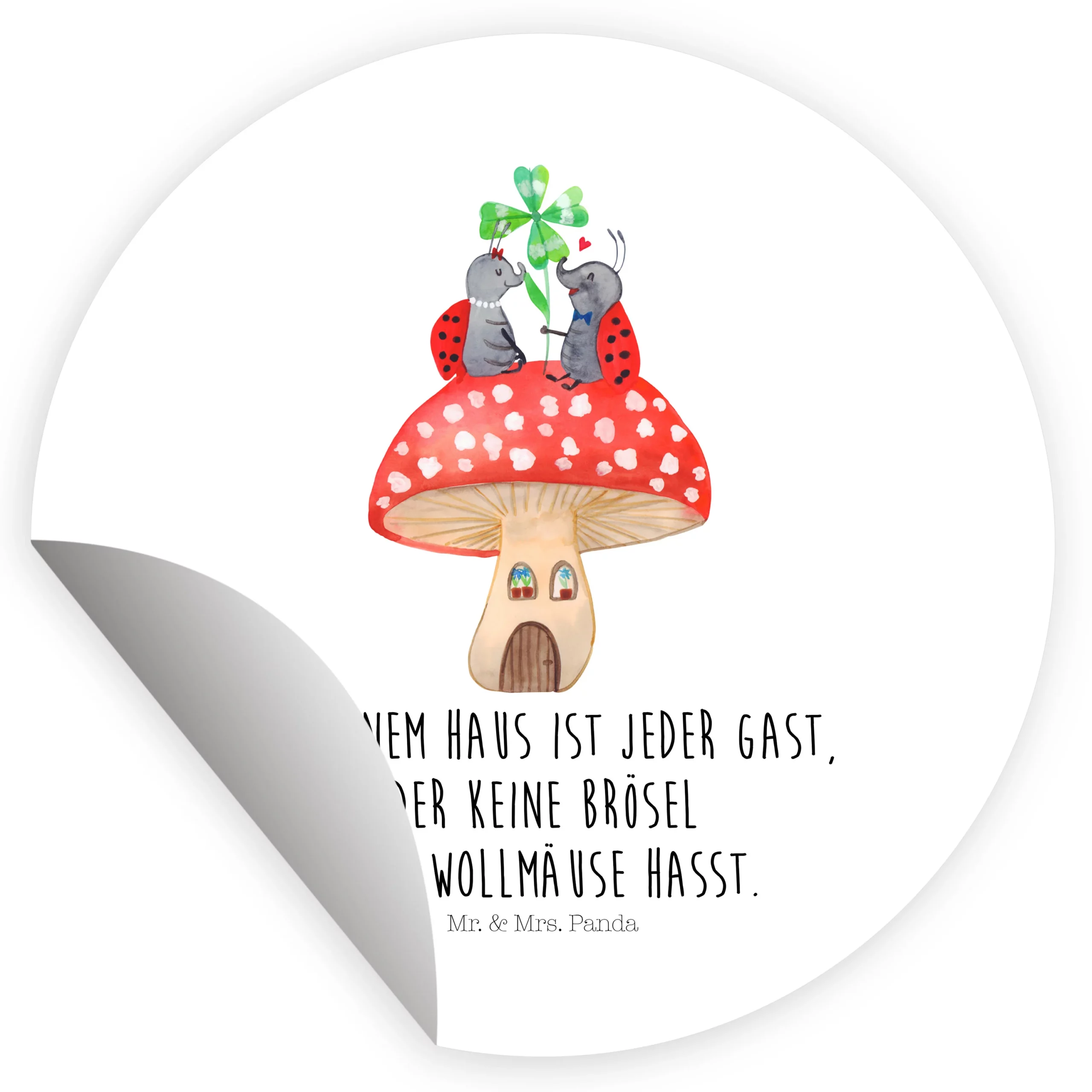 40mm Rund Aufkleber Marienkäfer Paar Fliegenpilz