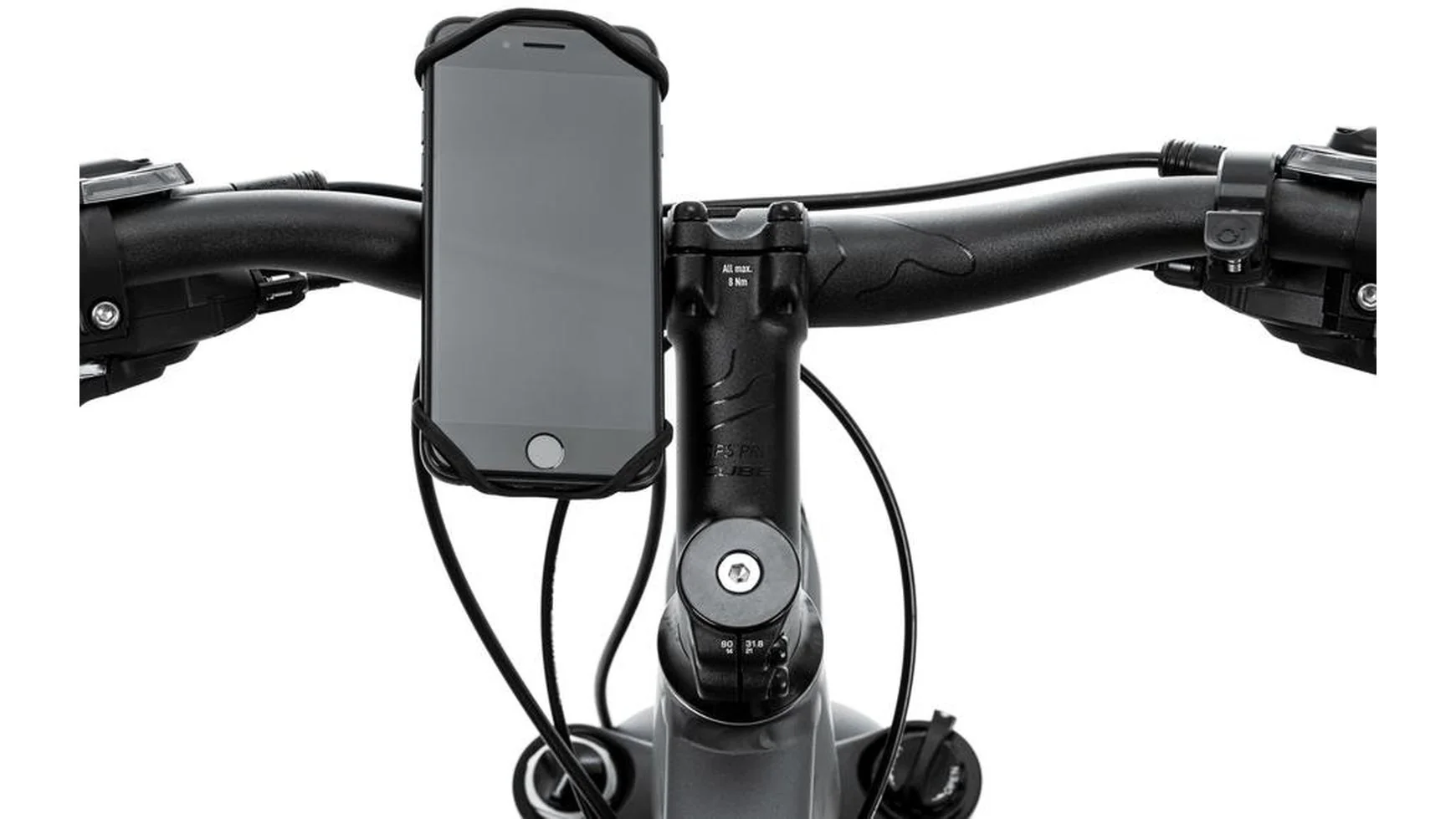 Die elastische PURE Handyhalterung passt für jedes Smartphonemodell und lässt sich völlig werkzeuglos montieren: Der Halter wird am Lenker platziert, der untere Silikon-Strap um den Lenker gespannt und eingehakt. Die Silikon-Ecken werden über die Kanten des Smartphones gezogen. Hält wirklich sicher und lässt sich im Neigungswinkel anpassen.