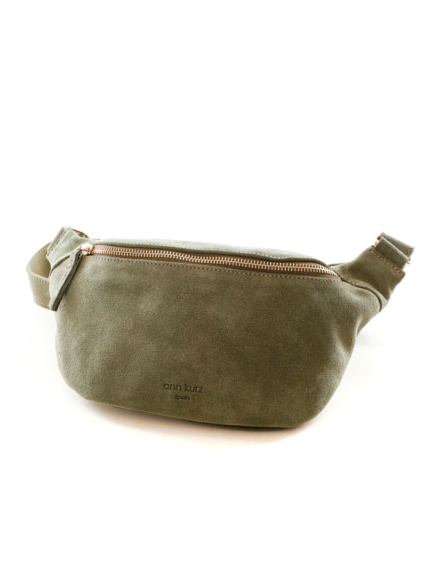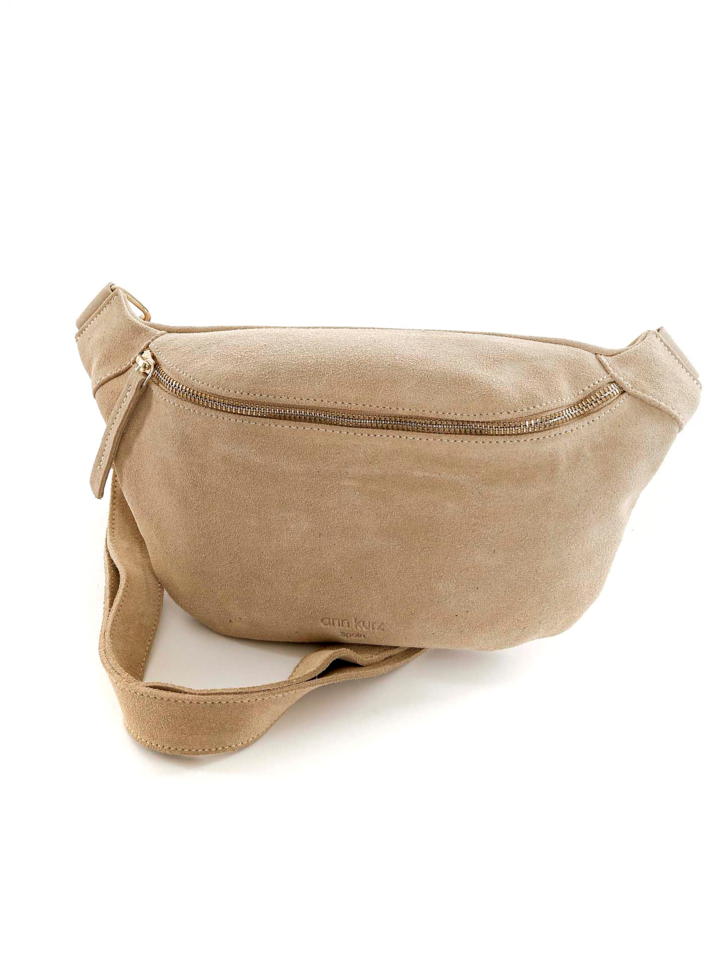 Bauchtasche aus Wildleder*Großes geräumiges Fach mit langem Reißverschluss*Kleine Innentasche mit Reißverschluss*Kleines Handyfach auf der Rückseite*Verstellbarer Gurt*Metalldetails: Goldmetallfarben*Maße (cm): 17 (H) 34 (B) 6 (T)*Made in Spain