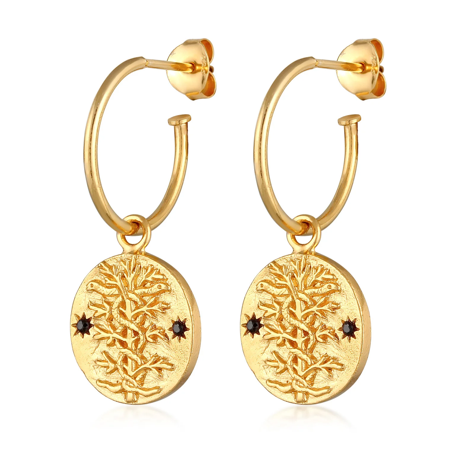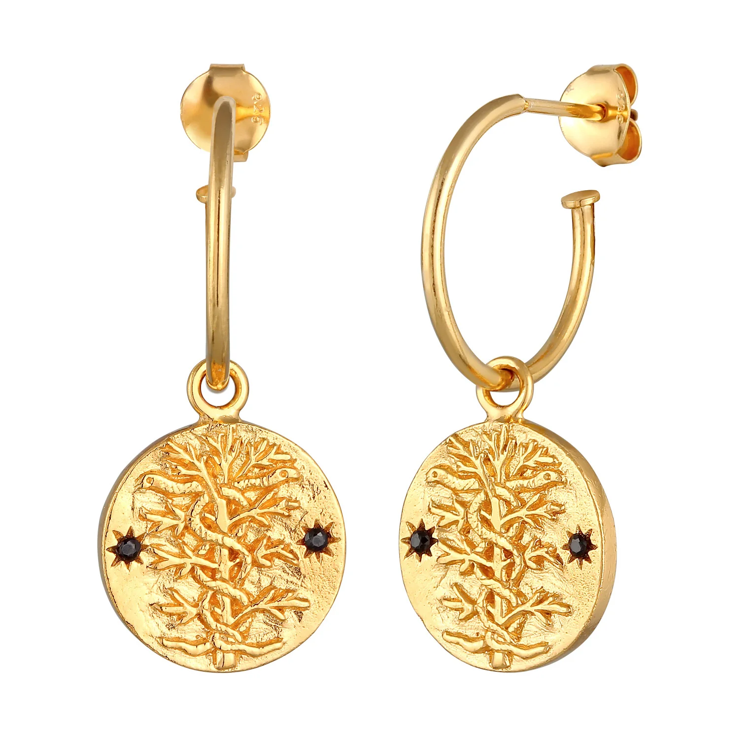 Die Anhänger stellen zwei Schlangen dar, die einen Baum umwinden. Der Anhänger ist 1,6cm gross. Zwei kleine Onyx Edelsteine mit Facettenschliff sind in den Anhänger eingefasst. Onyx ist der Geburtsstein aller Löwen und soll vor negativer Energie schützen.