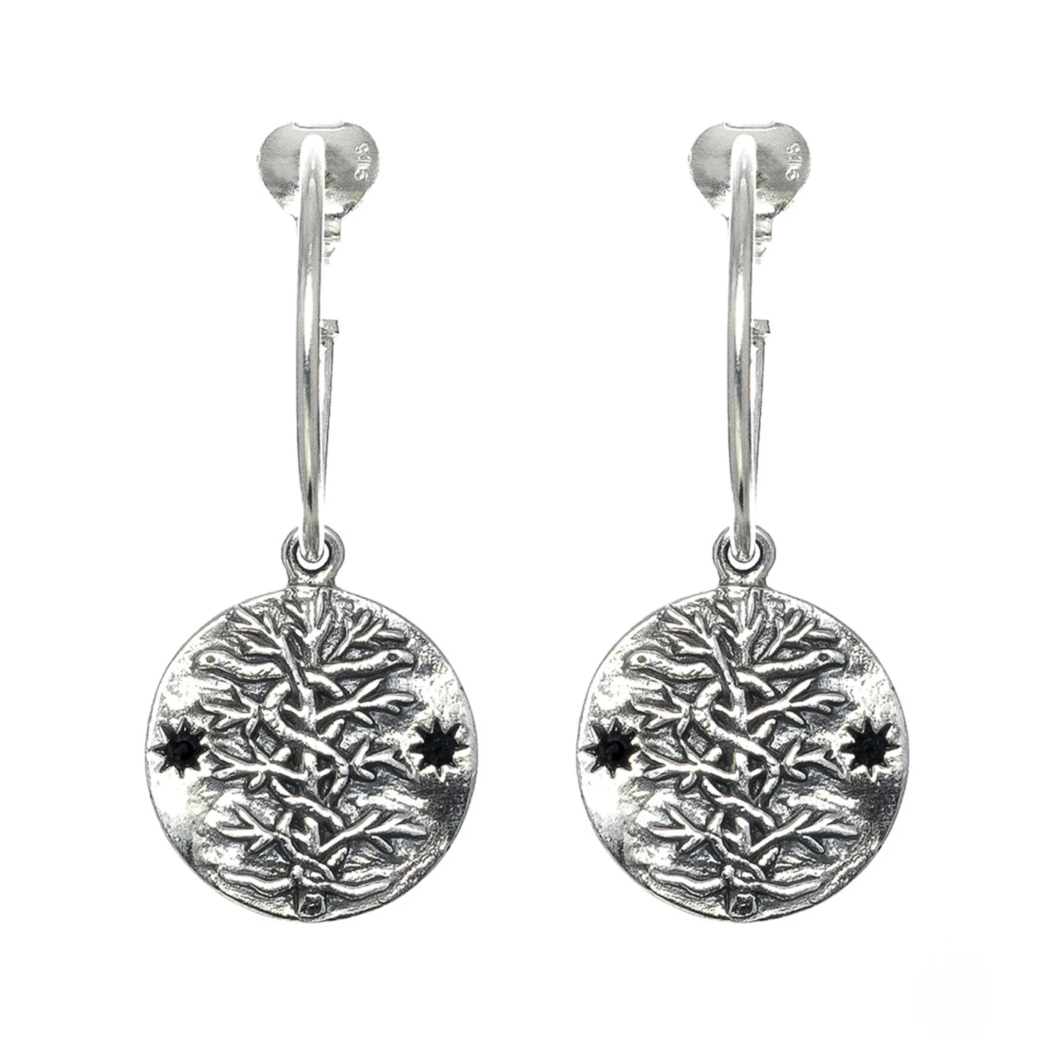 Die Antidote Ohrringe sind aus oxidiertem 925 Sterling Silber gefertigt.