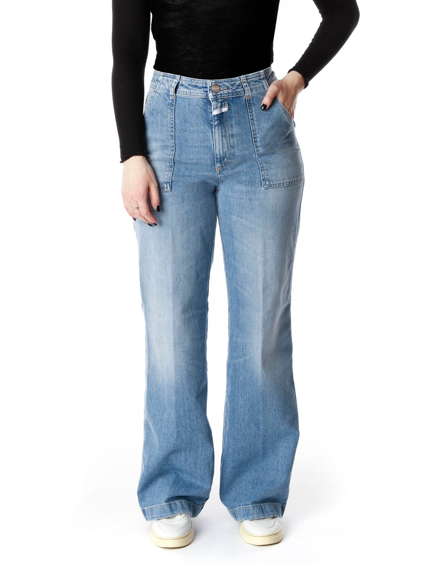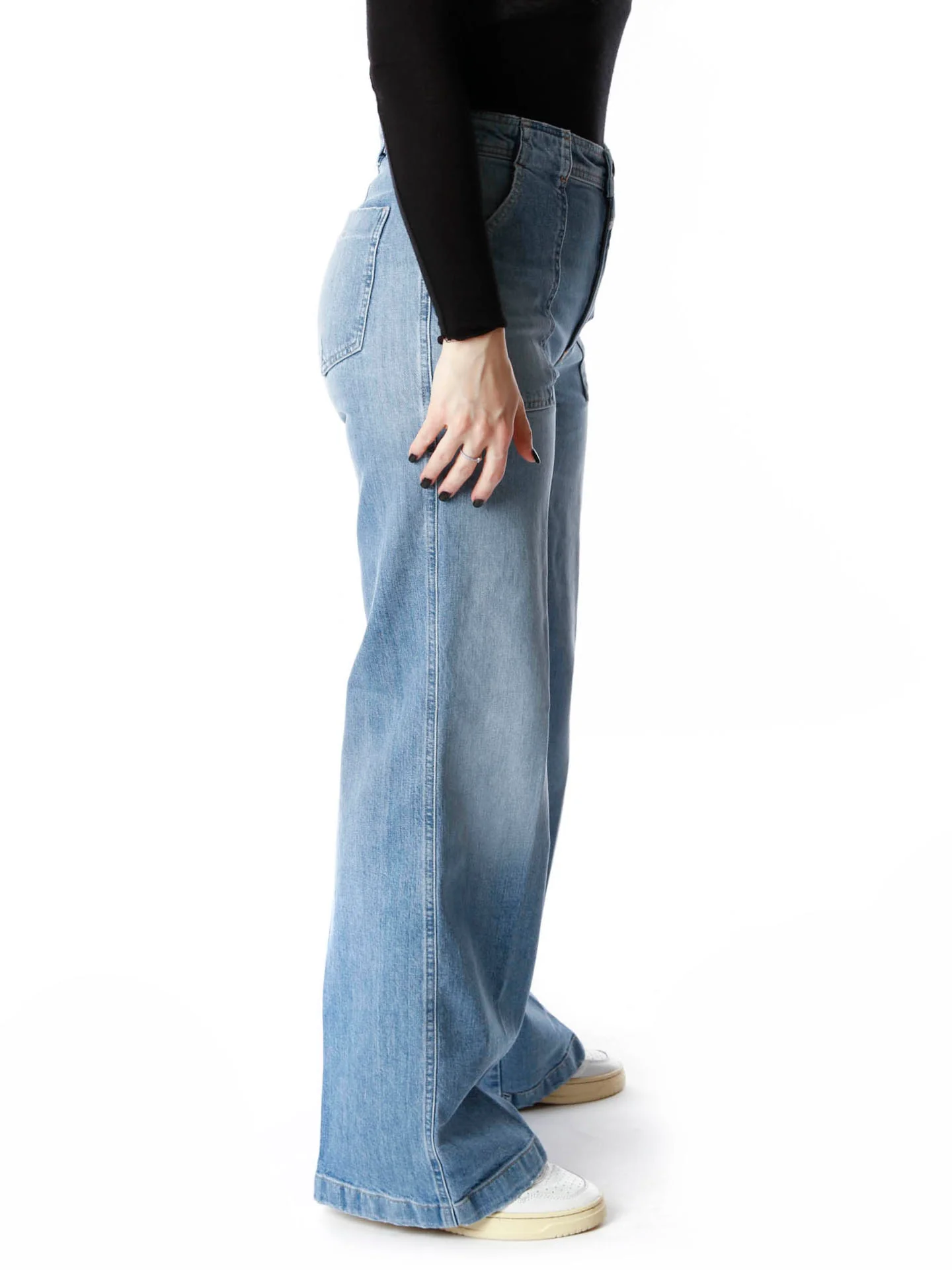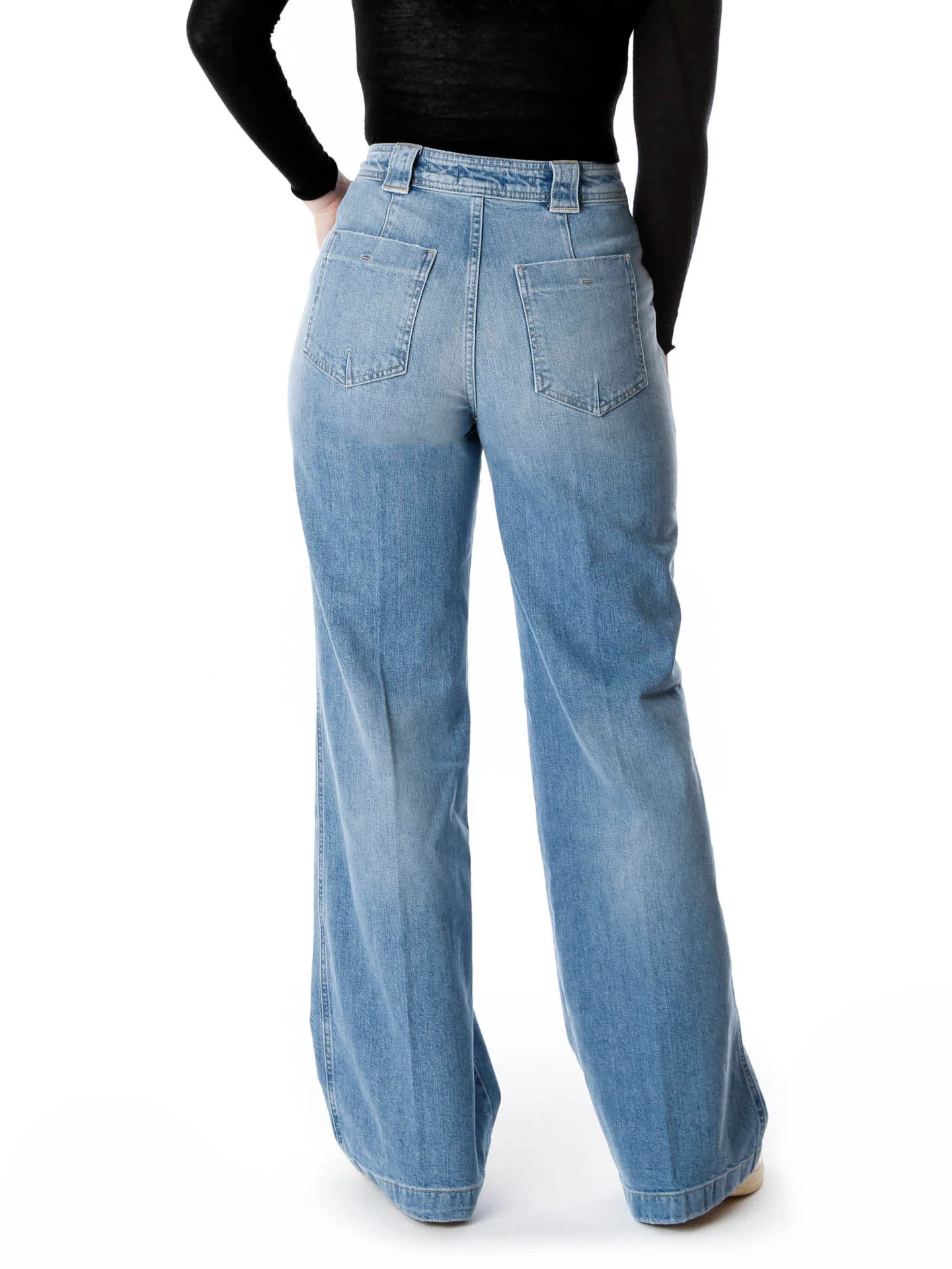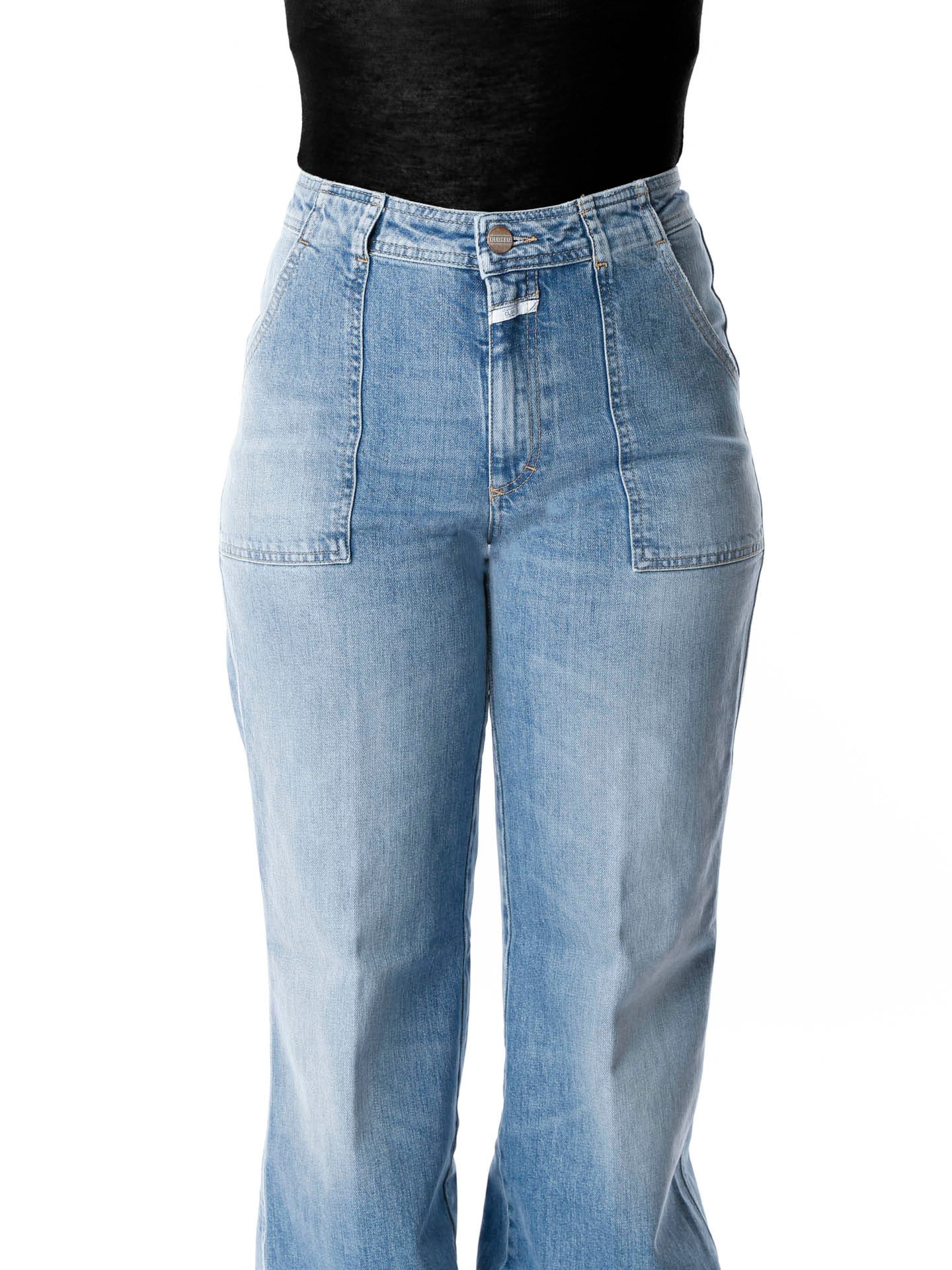Jeans mit weitem augestelltem Beinverlauf*Hohe Leibhöhe*Mit Knopf und Reißverschluss zu verschließen*Große aufgesetzte Eingrifftaschen an den Seiten*Aus italienischem Comfort Stretch Denim*12-oz-Denim*Helle Worn-in-Waschung mit deutlich helleren Effekten und weichen Farbübergängen*Leihte Abriebstellen an den Taschen- und Abschlusskanten*Unser Model trägt bei einer Größe von 1.73m die Gr. 26*Made in Italy