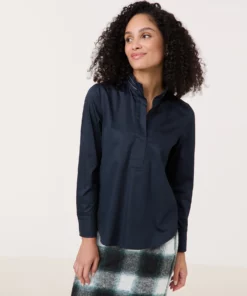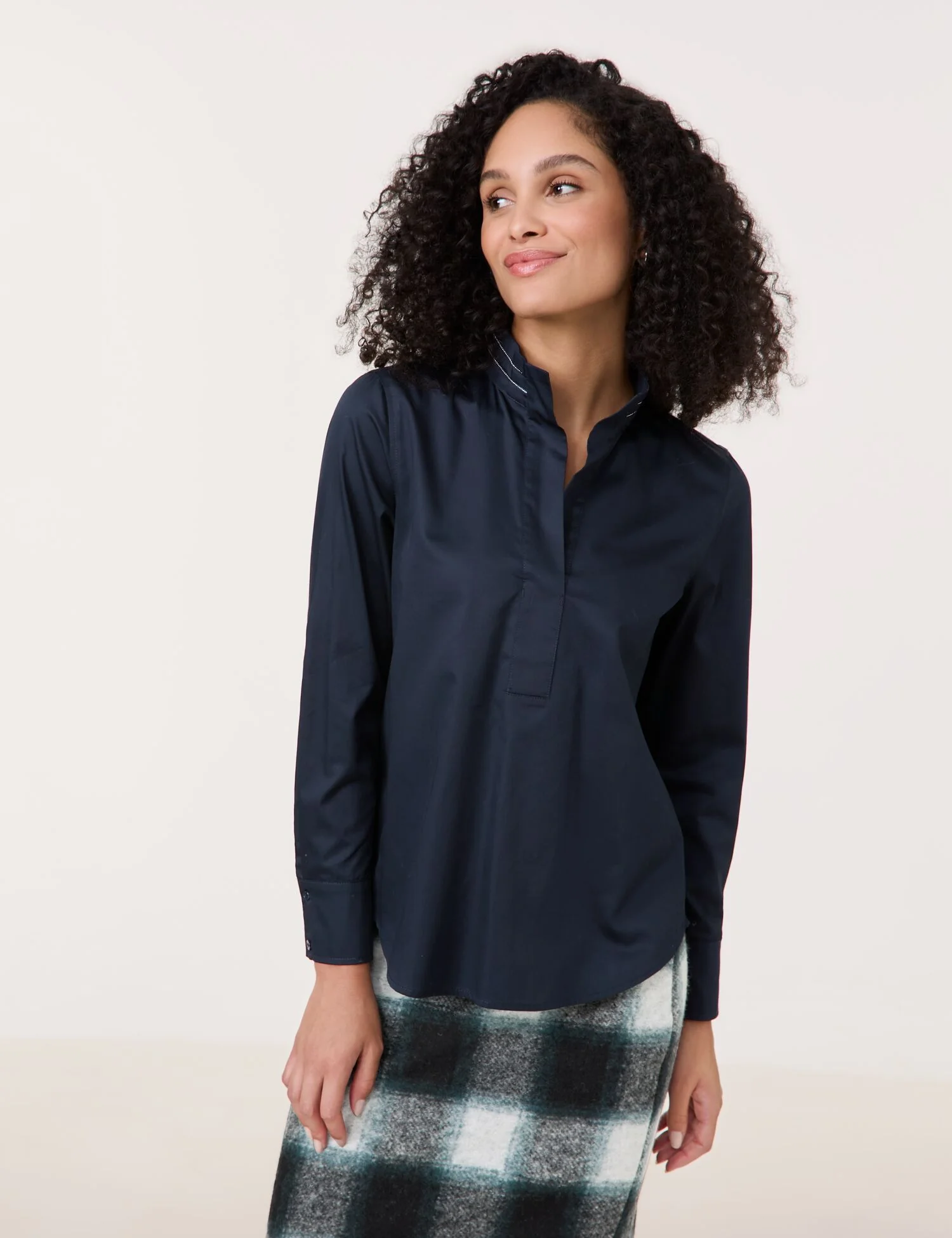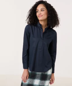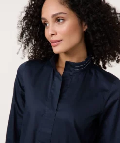 Baumwollbluse mit dekorativem Stehkragen