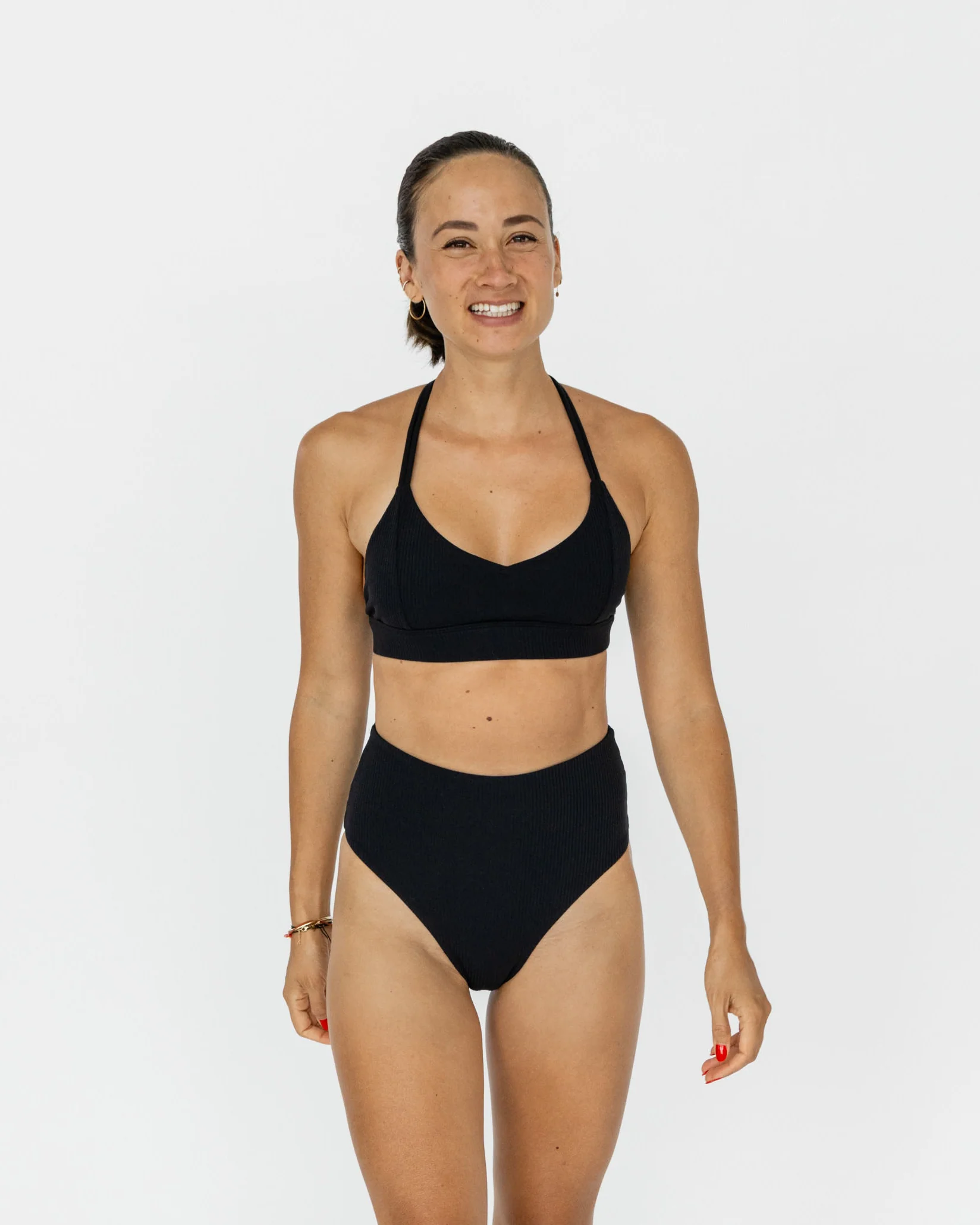 Mit meiner hohen Taille bedecke ich den Bauch und mein zusätzlich hoher Beinausschnitt lässt deine Beine länger erscheinen. Durch meinen hoch sitzenden Schnitt bin ich auch als Schwangerschafts-Badeslip super geeignet.