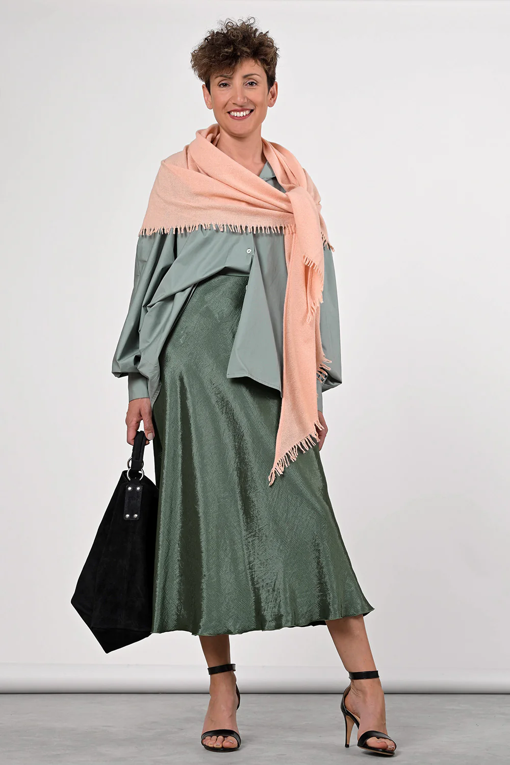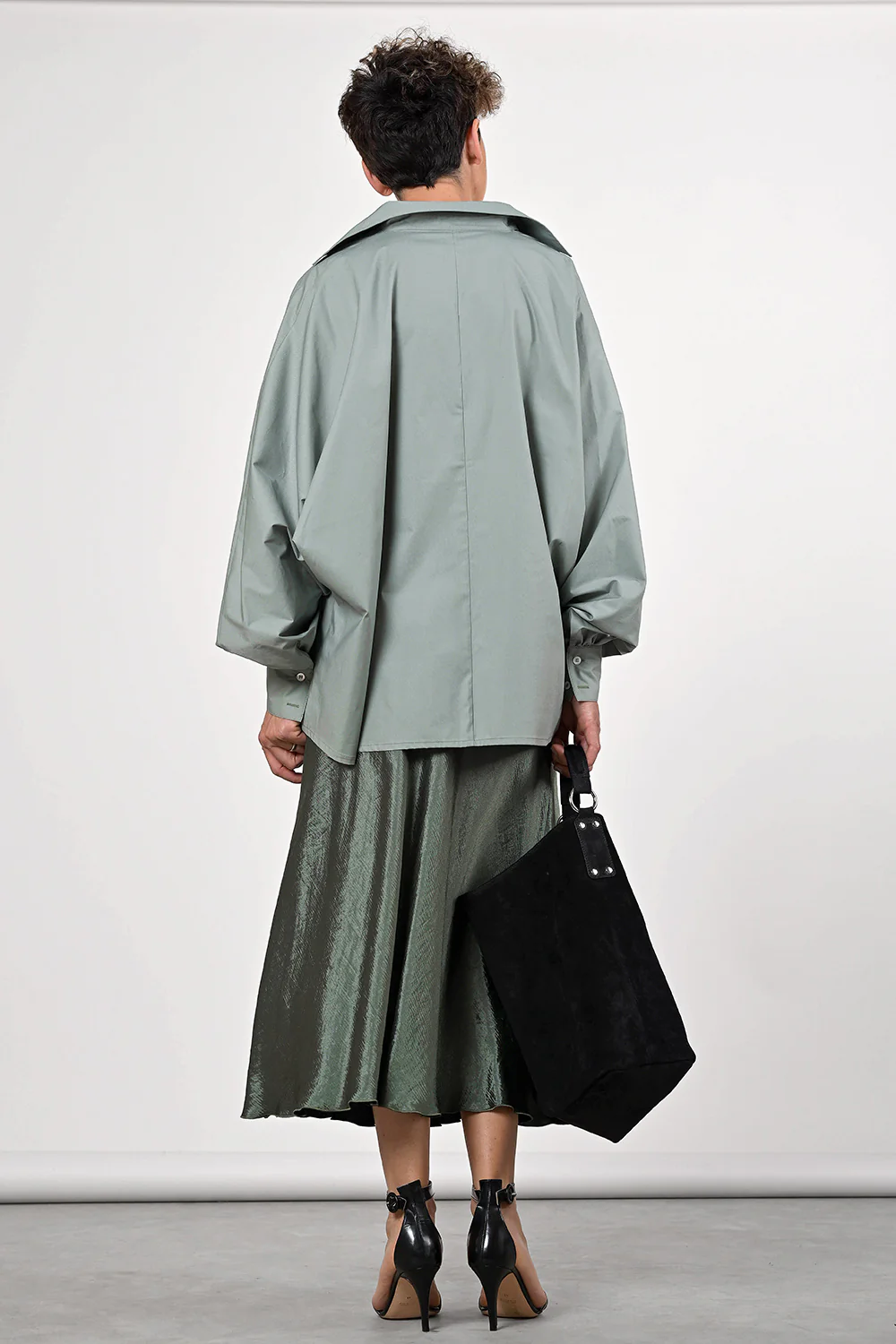 Grünes Baumwollhemd im Oversize-Look mit modernen Ärmeln.