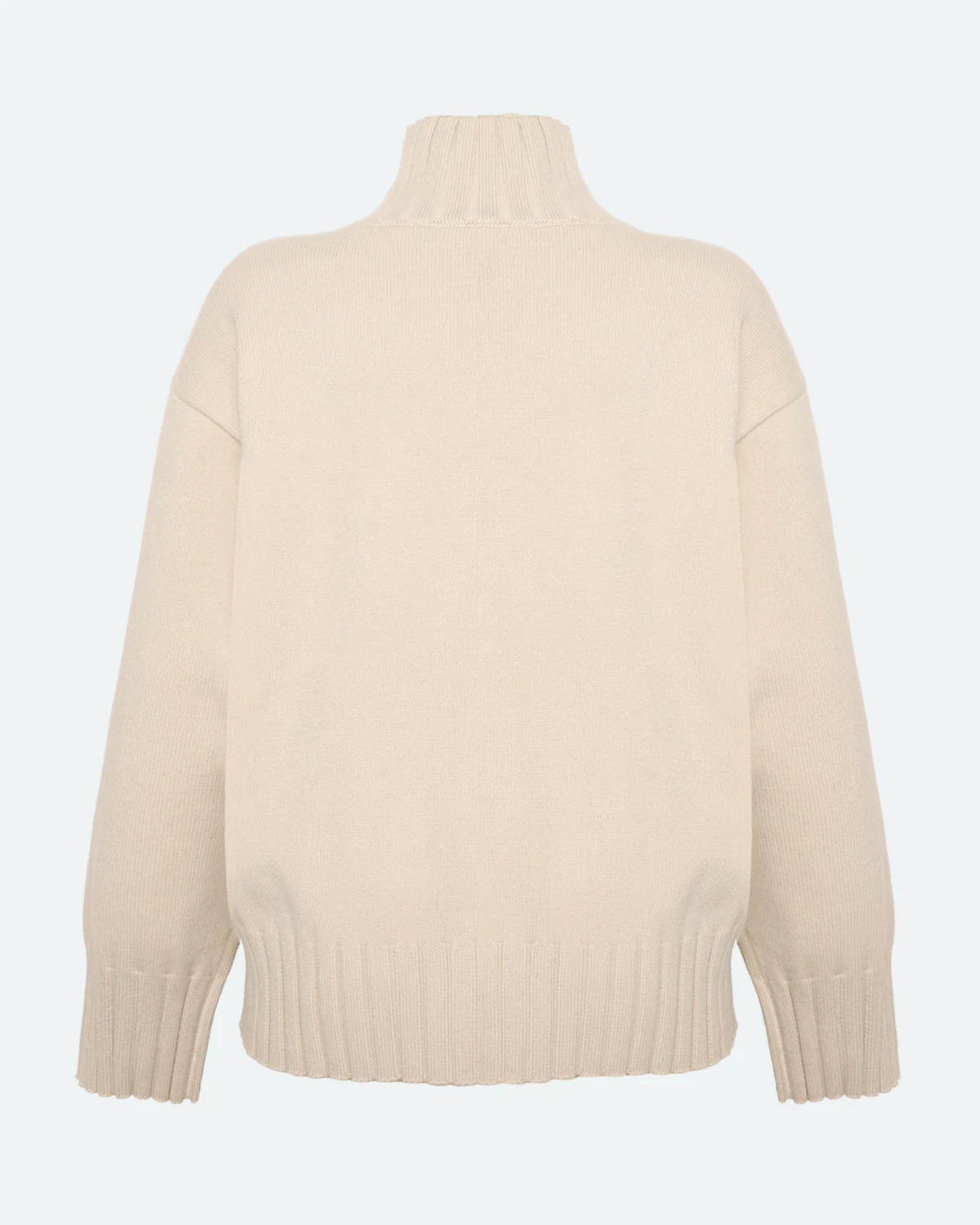 Darcys is a heavy knit jumper made from 50% viscose, 28% polyester and 22% nylon for a comfortable quality. The shirt has a slightly oversized fit and is designed with a high neck and wide ribbed edges.