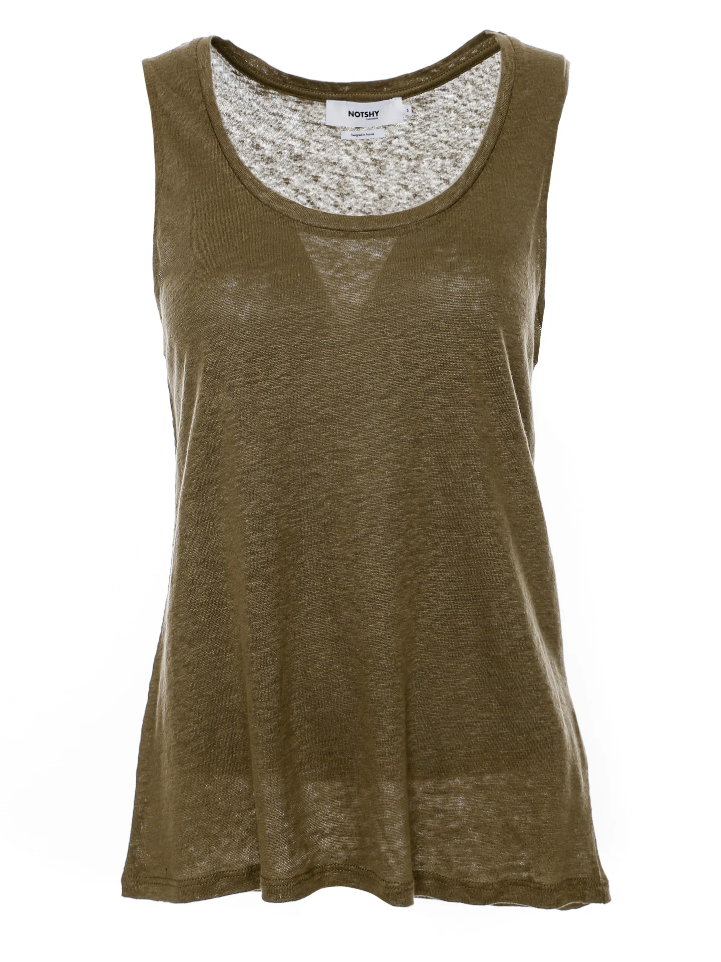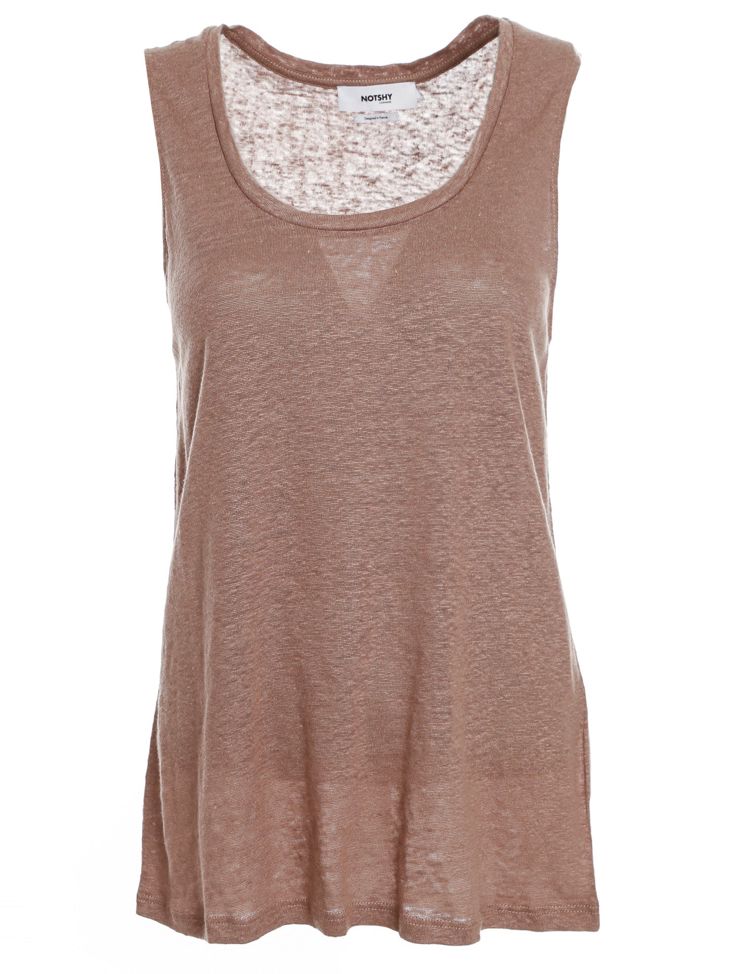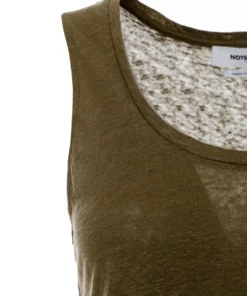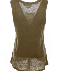 Ärmelloses Leinentop mit Rundhalsausschnitt,Semi-transparent,Lässige Passform,Länge: Etwa hüftlang