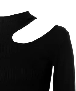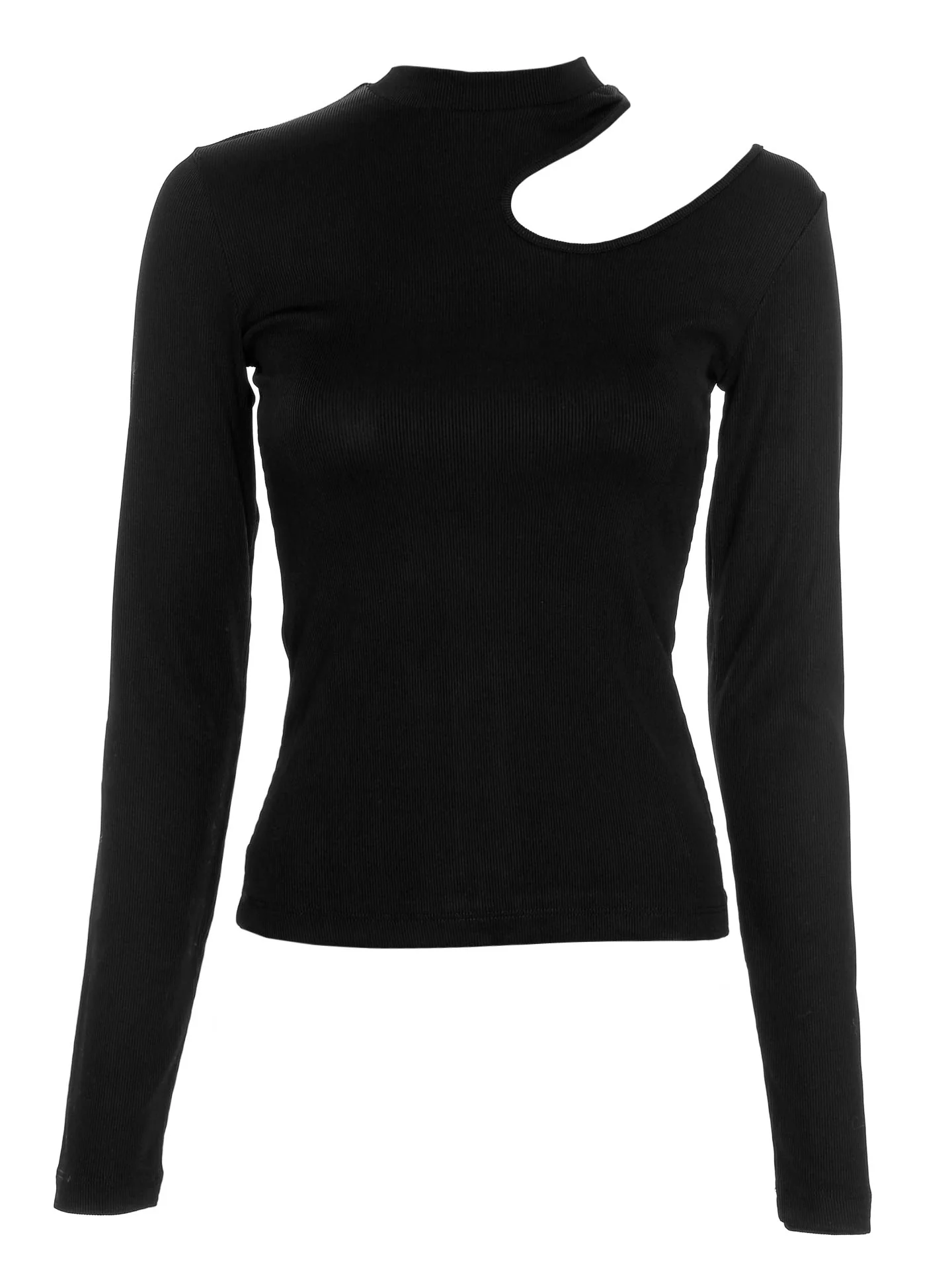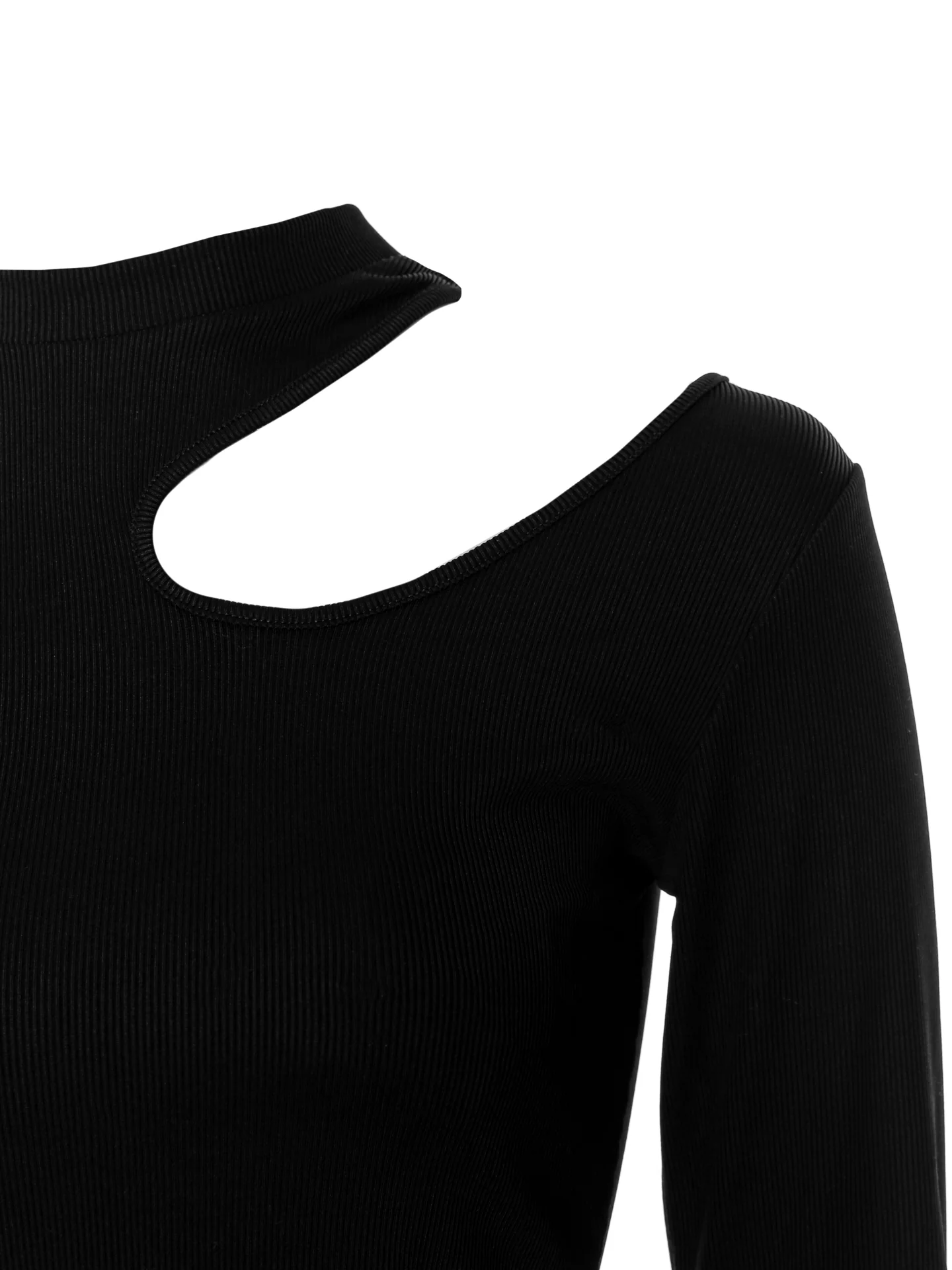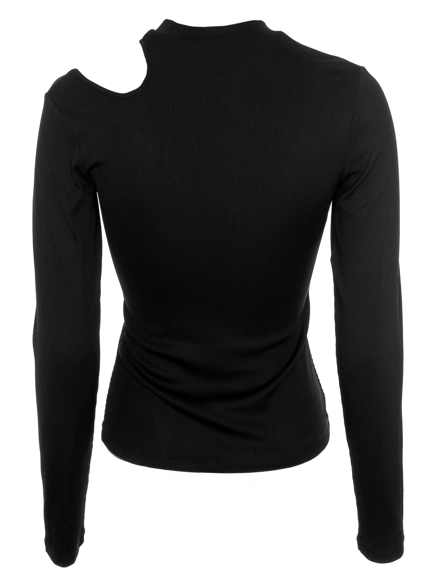 Langärmliges Top mit geripptem Rundhalsausschnitt*Leicht überschnittene Schulterpartie*Cut-out-Detail an der linken Schulter*Lange Ärmel*Superdehnbarer Stoff mit feiner Rippstruktur*Enge Passform*Länge: hüftlang