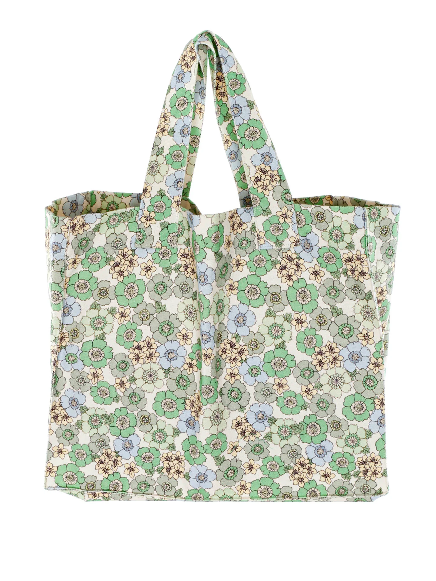 Robuster Shopper aus strapazierfähiger Biobaumwolle*Floraler Print in Grün-beige*Zwei Henkel*Maße ( cm ): H 28 x B 34 x T 13