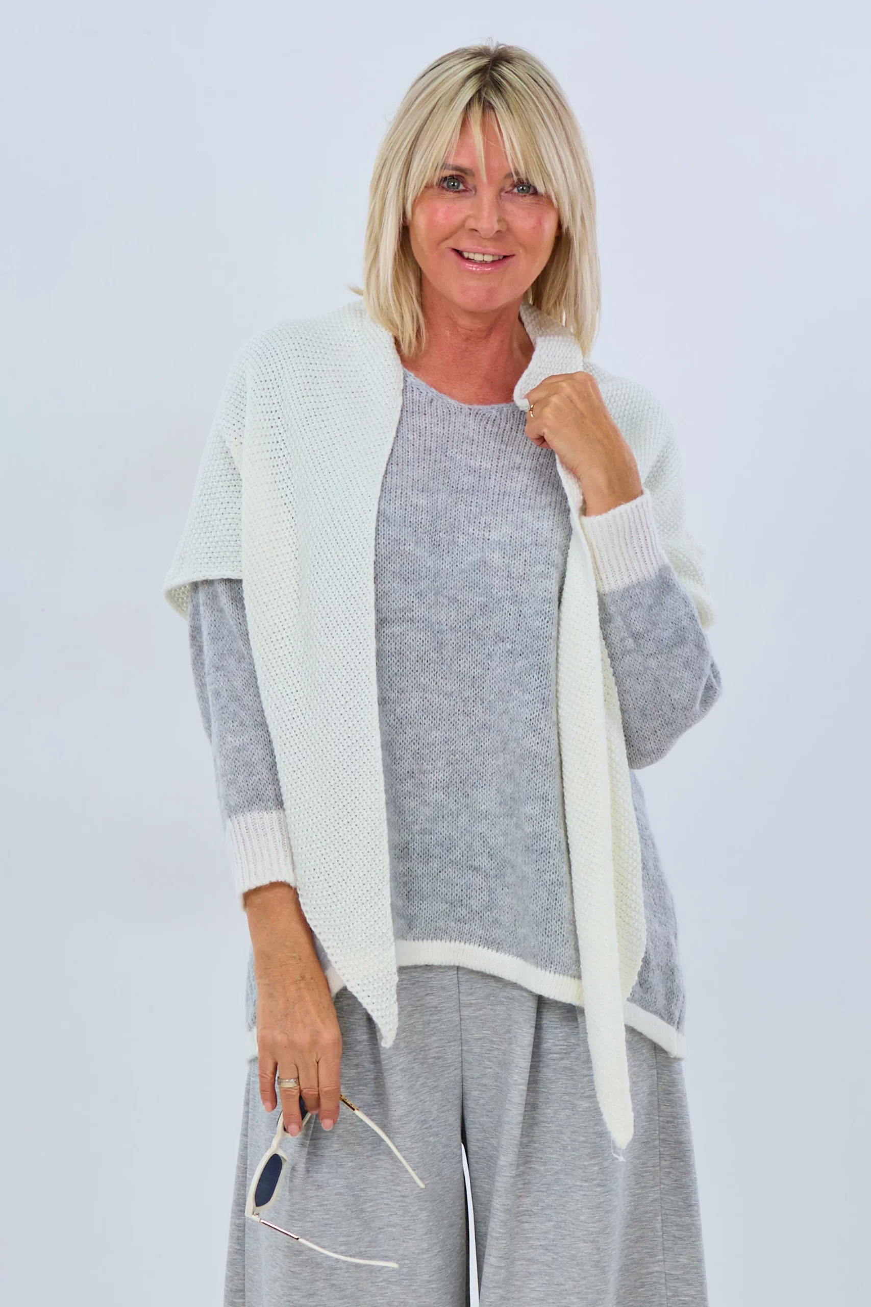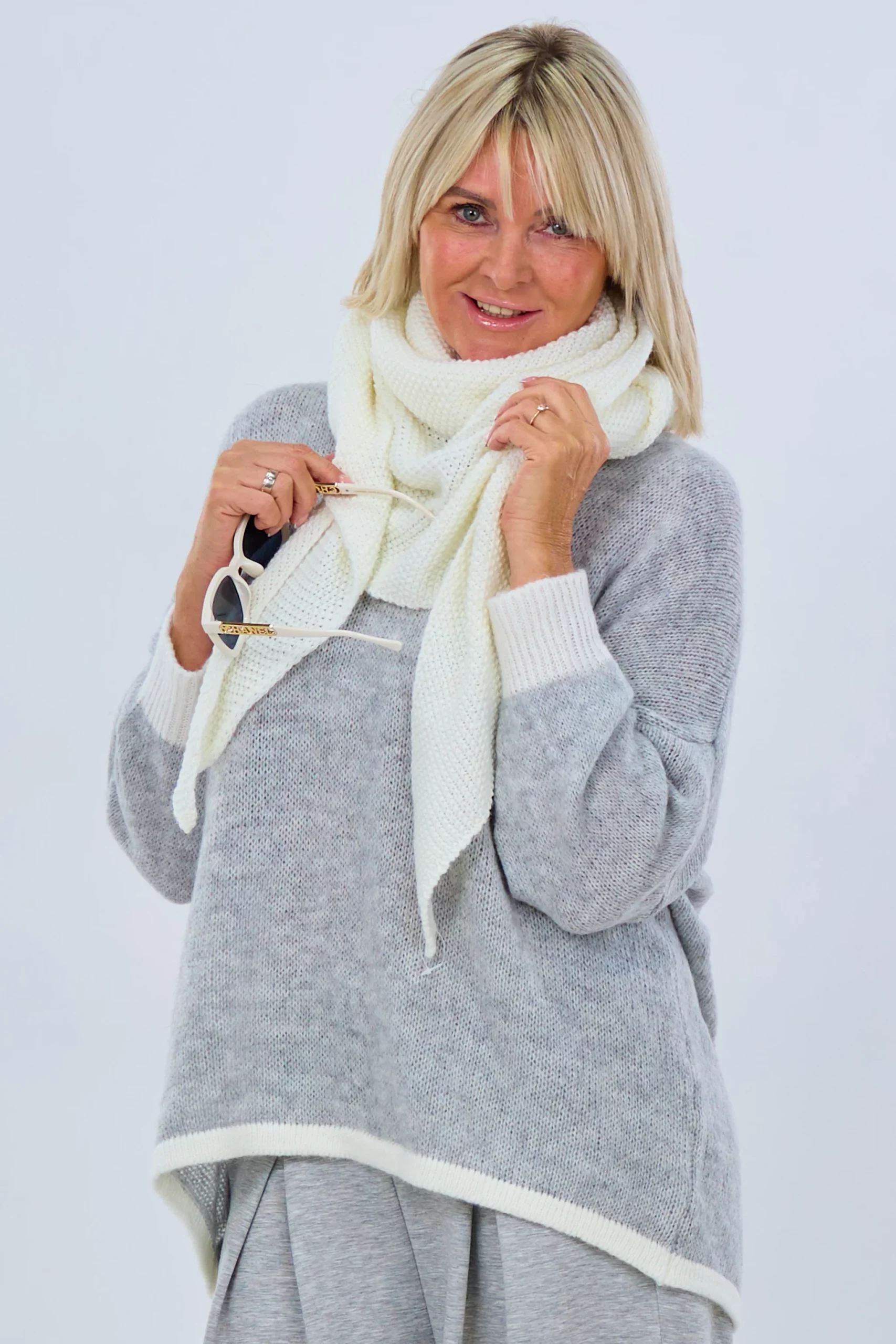 Weicher, großer Dreiecksschal im Perlmuster gestrickt.