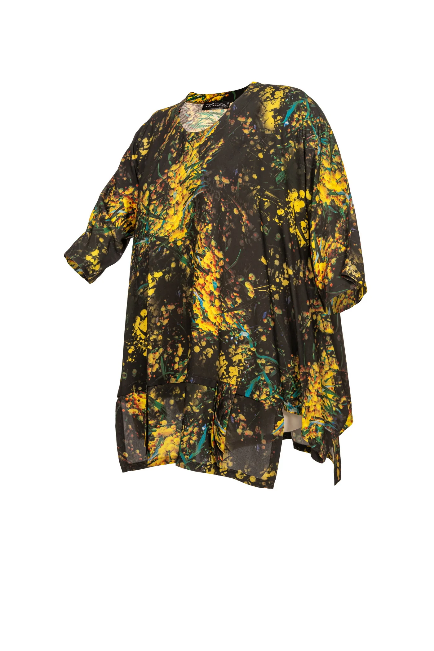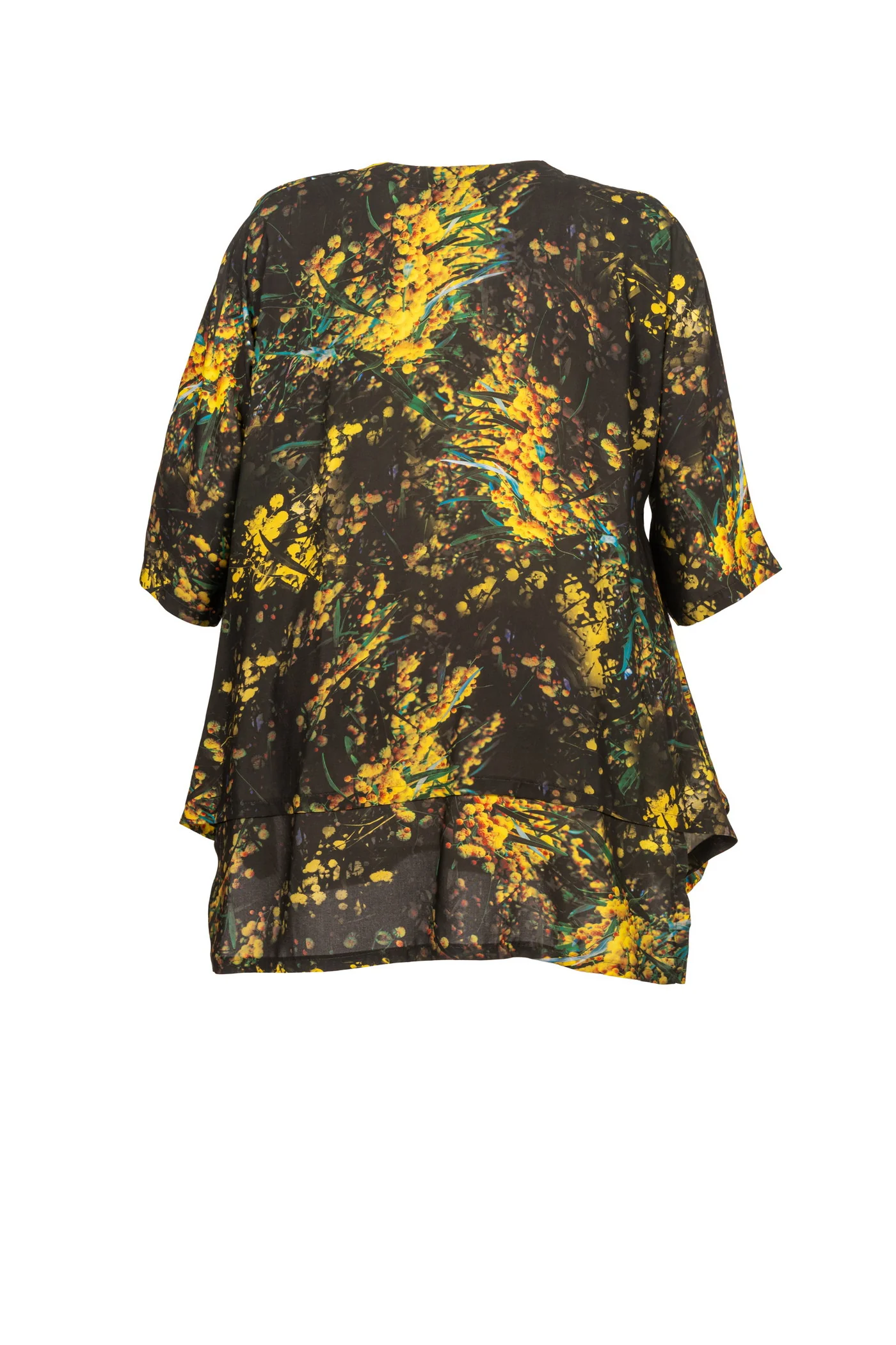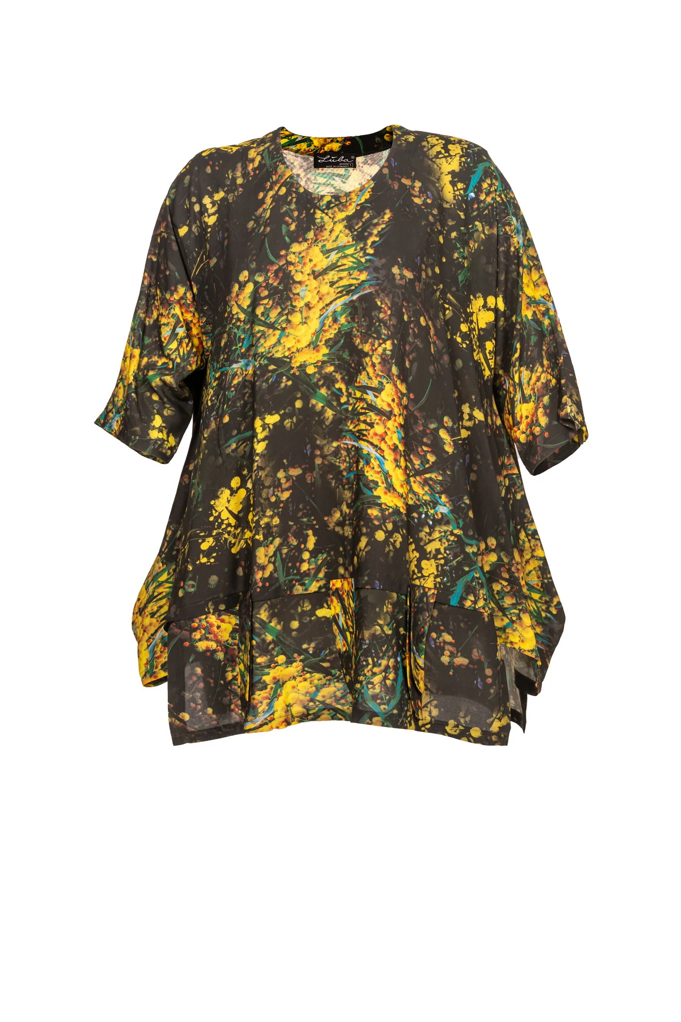 Viskose-Tunika, A-Linien mit Rundhalsausschnitt, Flower- Print, Ärmel 3/4 lang. Das alles verleiht Ihrer Kleidung einen exotischen Tauch. Präsentieren Sie sich in unserem einzigartigen grün-gelb Viskose-Tunika, das speziell für große Größen entworfen wurde. Der Schnitt kaschiert dabei gekonnt Problemzonen und garantiert ihnen wandelbare Looks zum Wollfühlen.