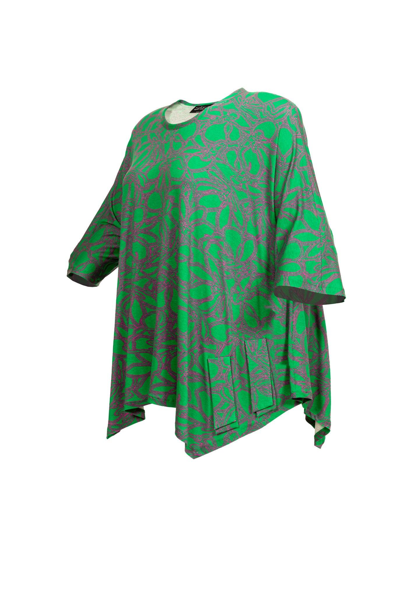 Diese Tunika verbindet auf ideale Weise Komfort und modischen Stil. Der fließende Viskose-Stoff fühlt sich angenehm leicht auf der Haut an und bietet eine perfekte Passform. Der auffällige grün-pink Allover-Print und der Rundhalsausschnitt machen dieses Kleidungsstück zu einem einzigartigen und trendigen Begleiter. Der durchdachte Schnitt kaschiert Problemzonen und bietet vielseitige Styling-Möglichkeiten für verschiedene Anlässe, ob im Alltag oder bei besonderen Gelegenheiten.
