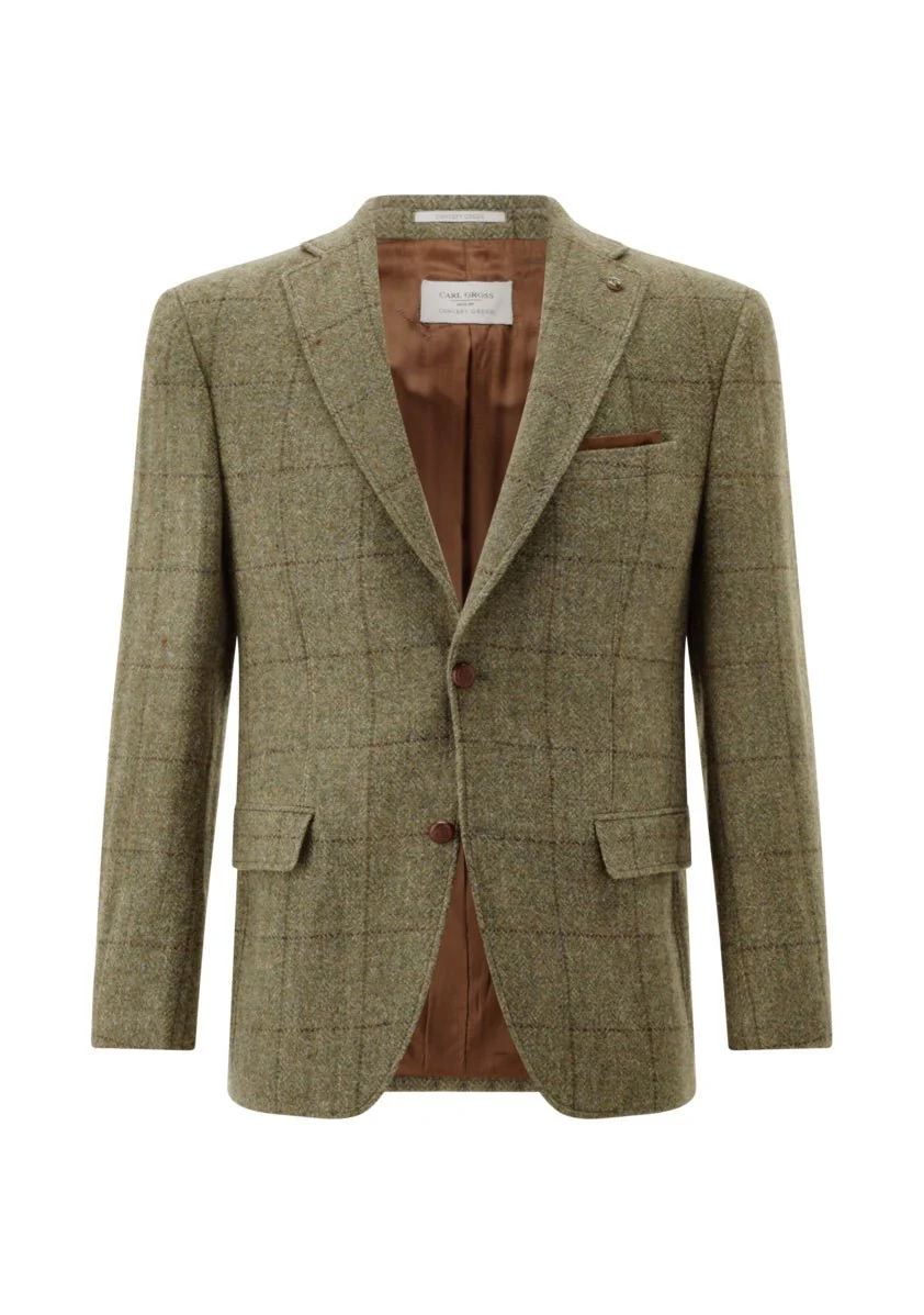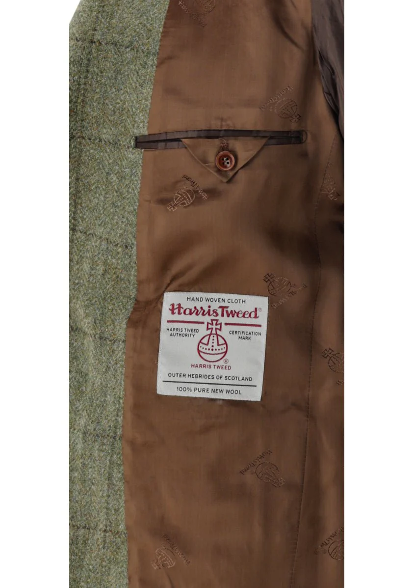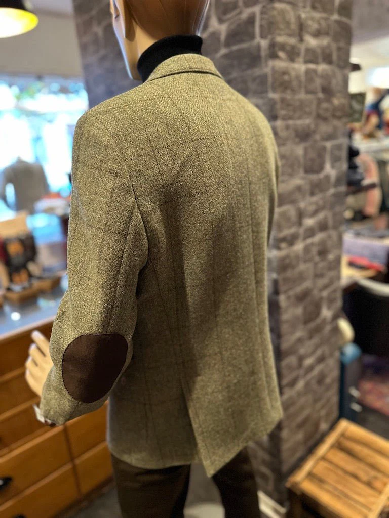 Dieses Sakko ist aus 100%igem, handgewebtem Schottland-Schurwoll-Stoff und mit Leder-Details ausgestattet – Harris Tweed!