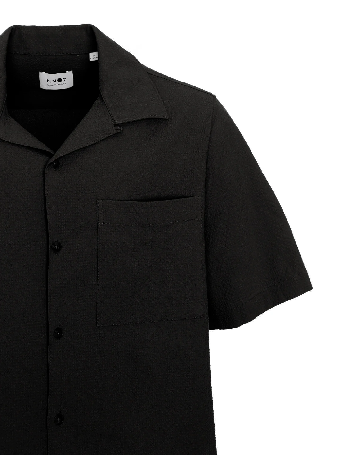 Kurzärmeliges Seersucker-Hemd mit Kentkragen*Überschnittene Schulterpartie*Durchgehende Knopfleiste mit Knöpfen aus Horn*Aufgesetzte Brusttasche auf der linken Seite*Schmale Rückenpasse*Softe Haptik*Kastiger Schnitt*Regular Fit*Länge: etwa hüftlang