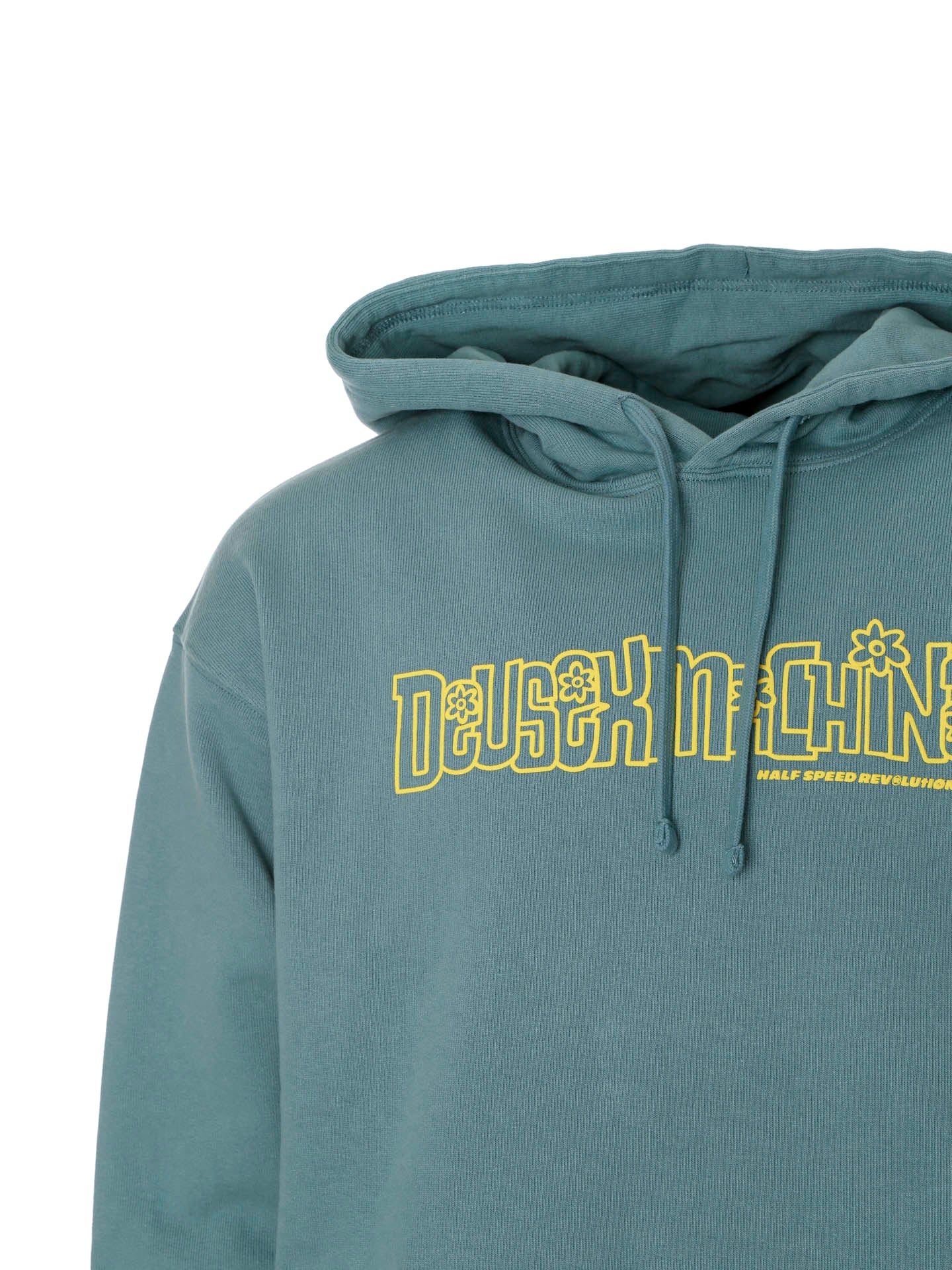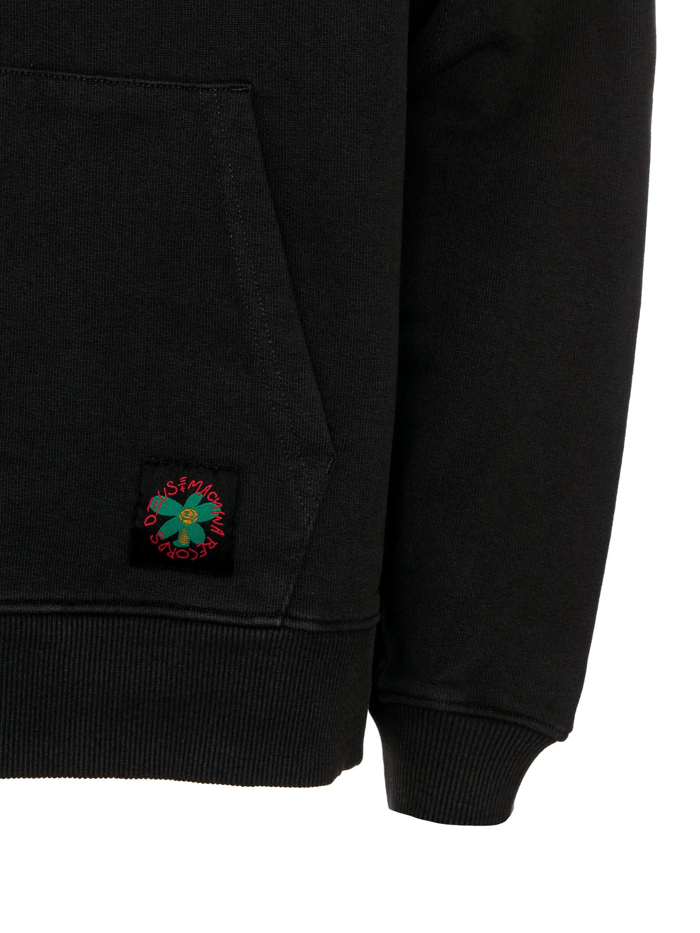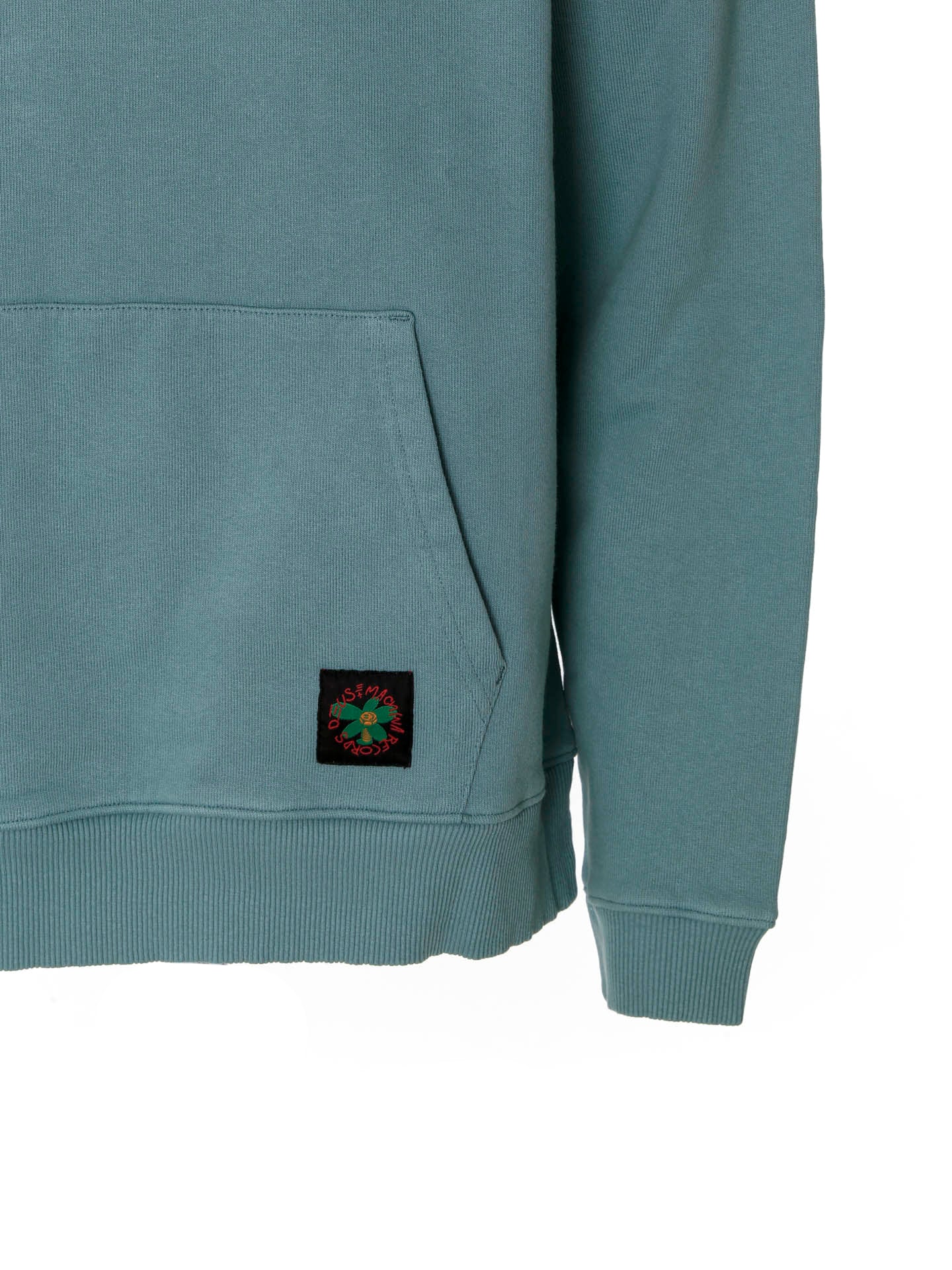 Kapuze mit Tunnelzug und breiter Kordel*Rippbündchen an den Ärmelabschlüssen sowie am Saum*Überschnittene Schulterpartie*Kängurutasche auf der Vorderseite*Kleiner Puffdruck auf der Vorderseite*Großer Puffdruck auf der Rückseite*Label-Tag am Saumabschluss*Gebürstetes Innenfutter*Enzyem-Stonewashed*Reguläre Passform*Länge: hüftlang