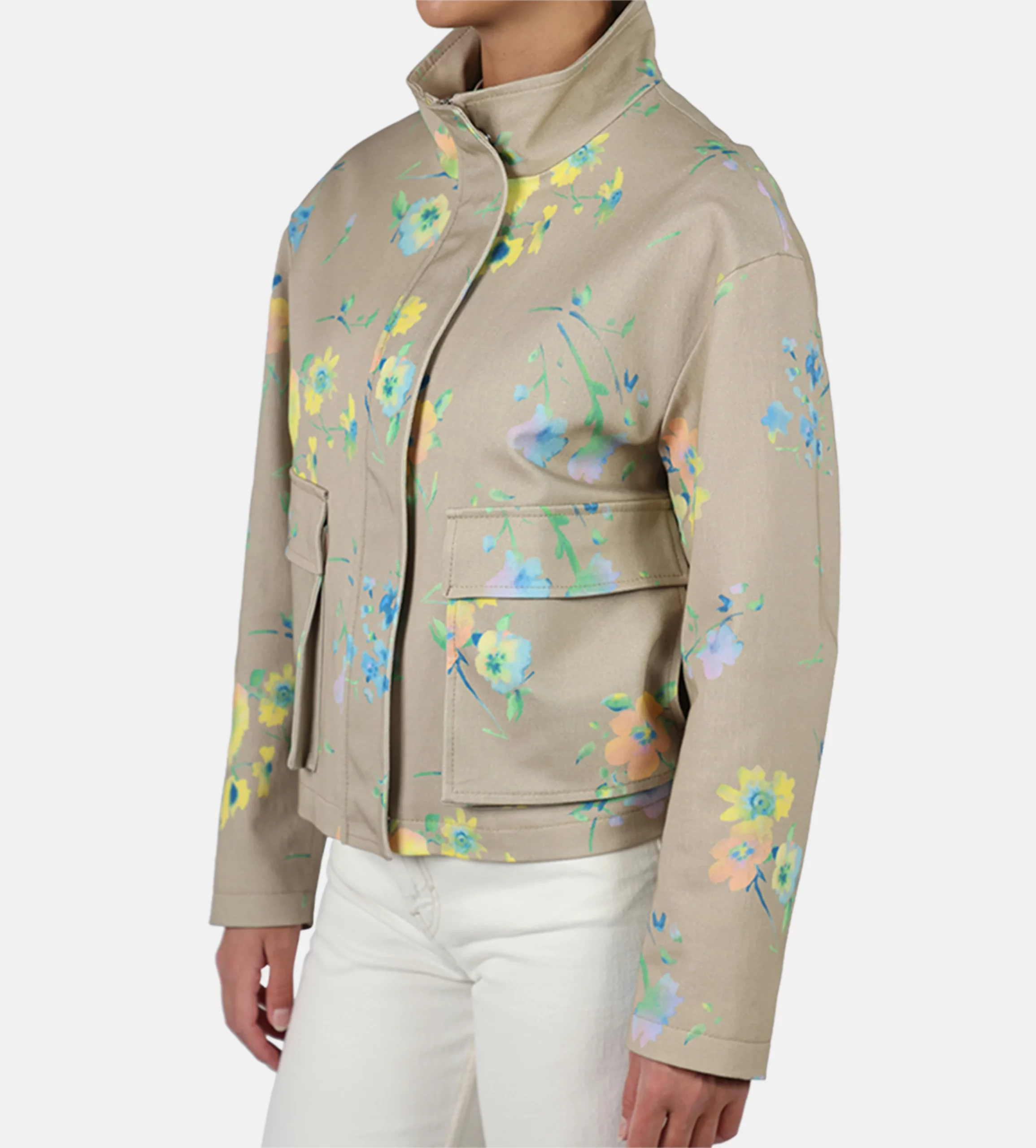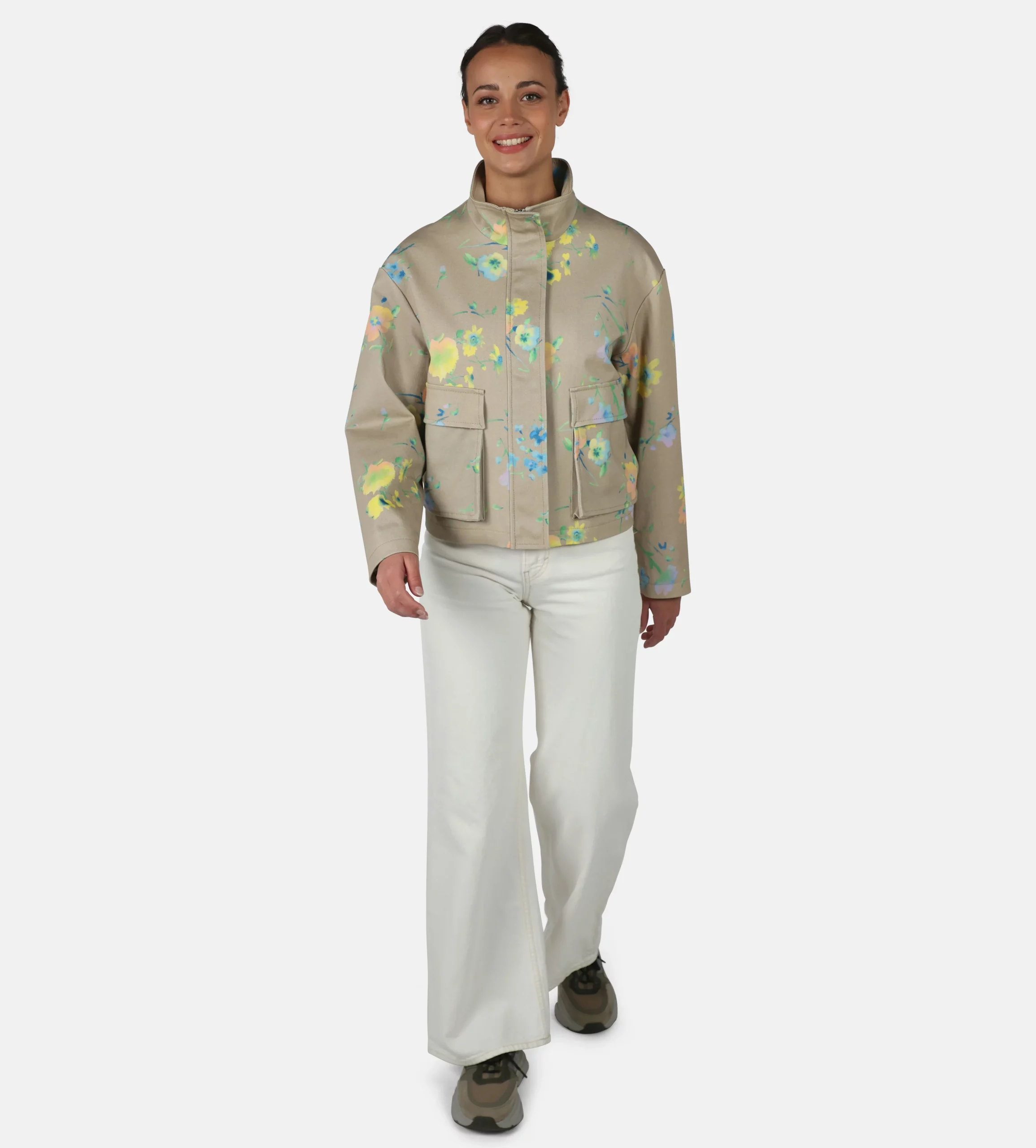 City Jacke mit Stehkragen, verdeckte Druckknopfleiste, aufgestzte Taschen mit zusätzlichem Seiteneingriff, Made in Europe