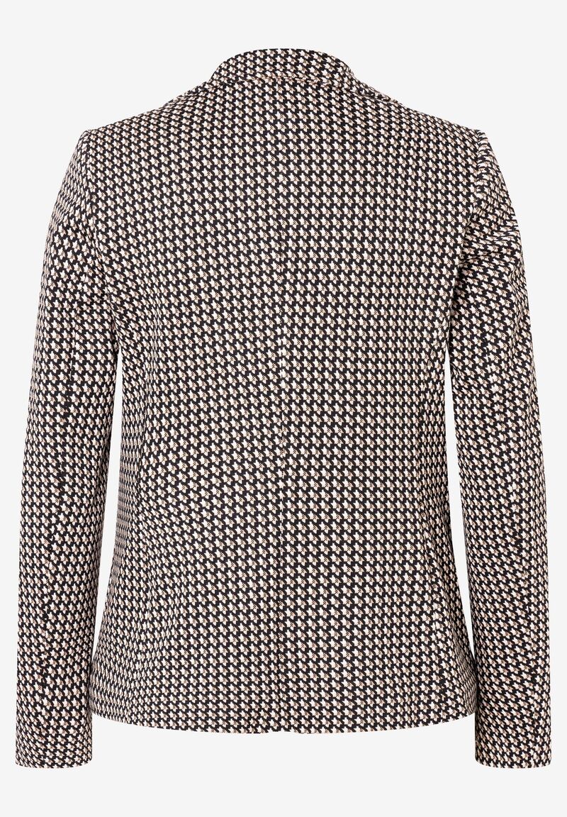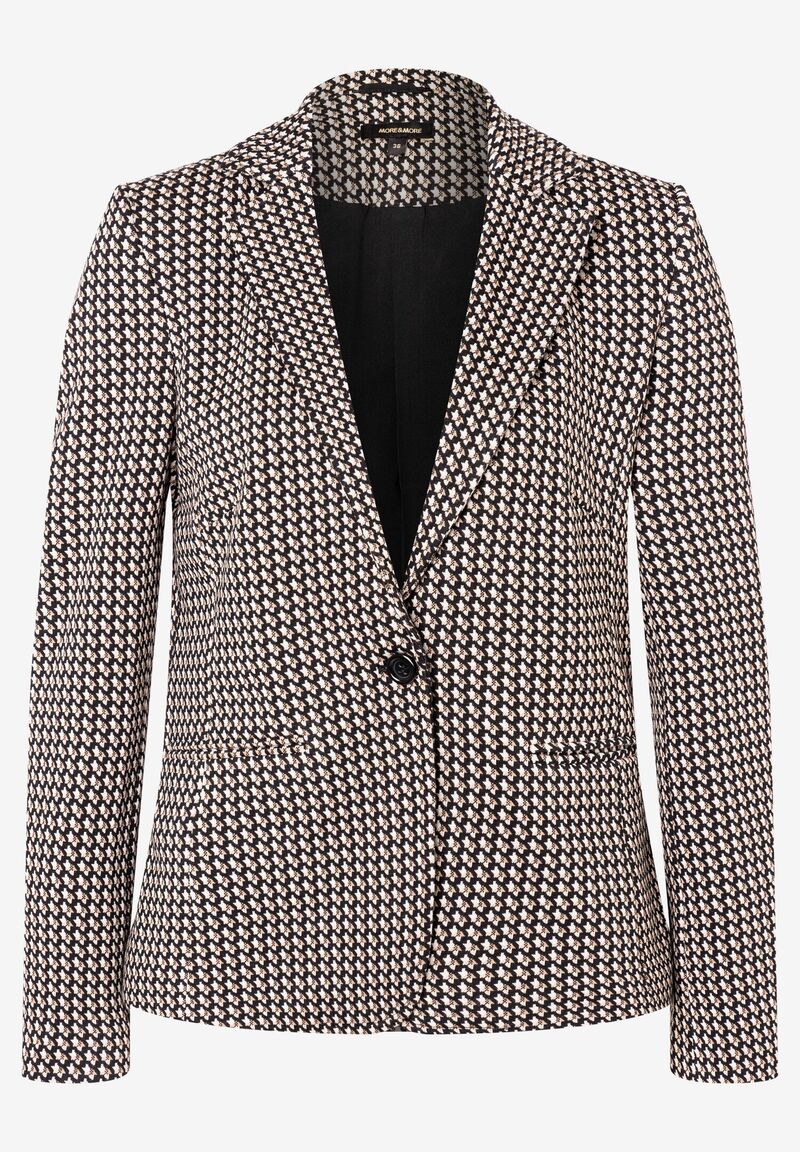 Der leicht-taillierte Jerseyblazer von MORE & MORE mit graphischem Minimuster kann mit passender Hose zu einem modernen Business-Look gestylt werden. Er passt aber genauso gut zum schwarzen Etuikleid oder zur lässigen Jeans.