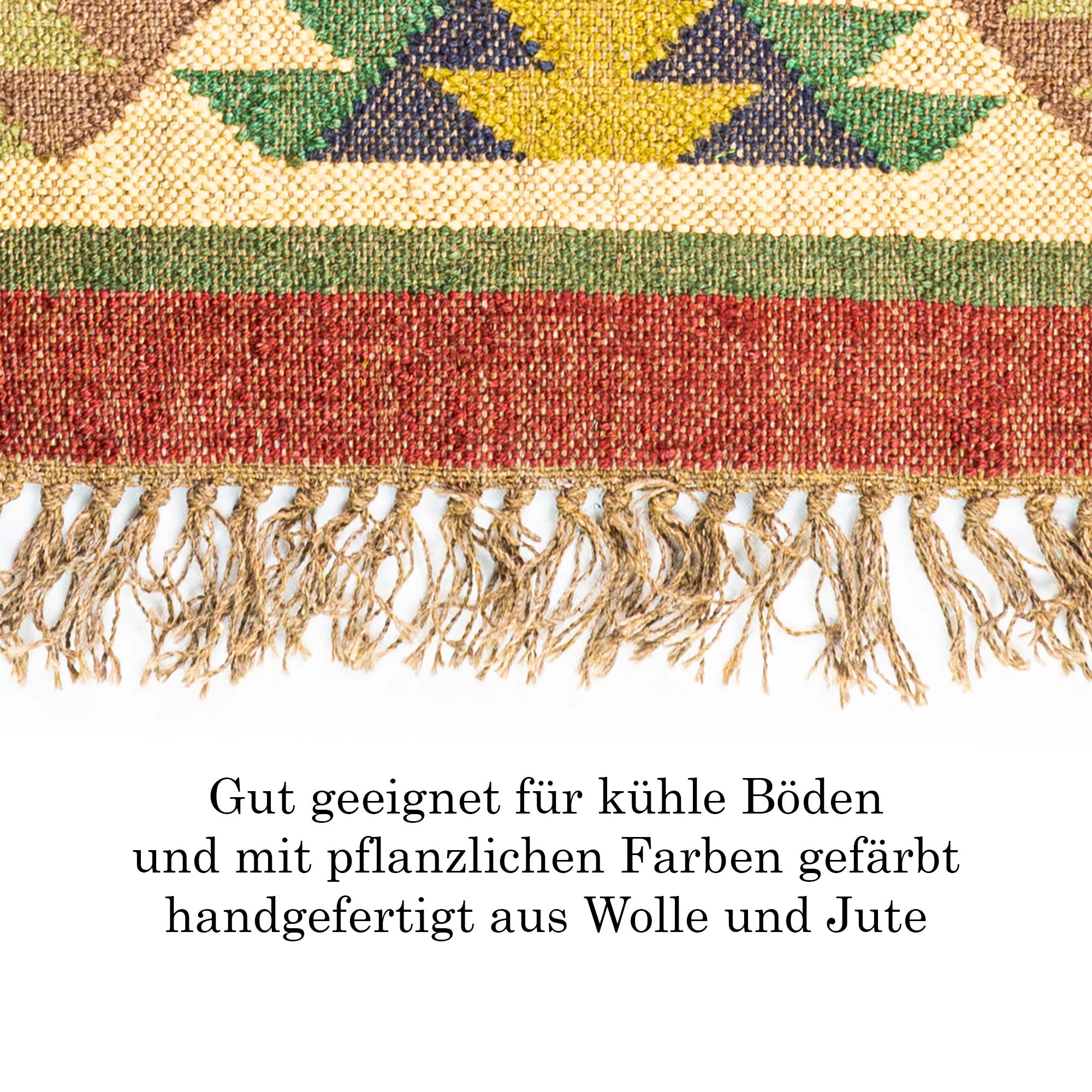 • Sonstiges: Diese bunt gemusterten Läufer überzeugen durch ihre natürliche Optik. Das Natur-Material bietet Ihnen ein angenehmes Gefühl unter den Füßen oder Hausschuhen. Ebenso überzeugt das Jute-Woll Gemisch nicht nur mit seiner Haptik, sondern auch in der weichen und ehrlichen Atmosphäre die es ausstrahlt. Durch die Handarbeit ist jeder Läufer ein Einzelstück. Hergestellt in Indien balanciert der Flair der Teppiche zwischen majestätisch-orientalischen und peruanisch. Bereichern Sie Ihre vier Wände und lassen Sie sich verzaubern.