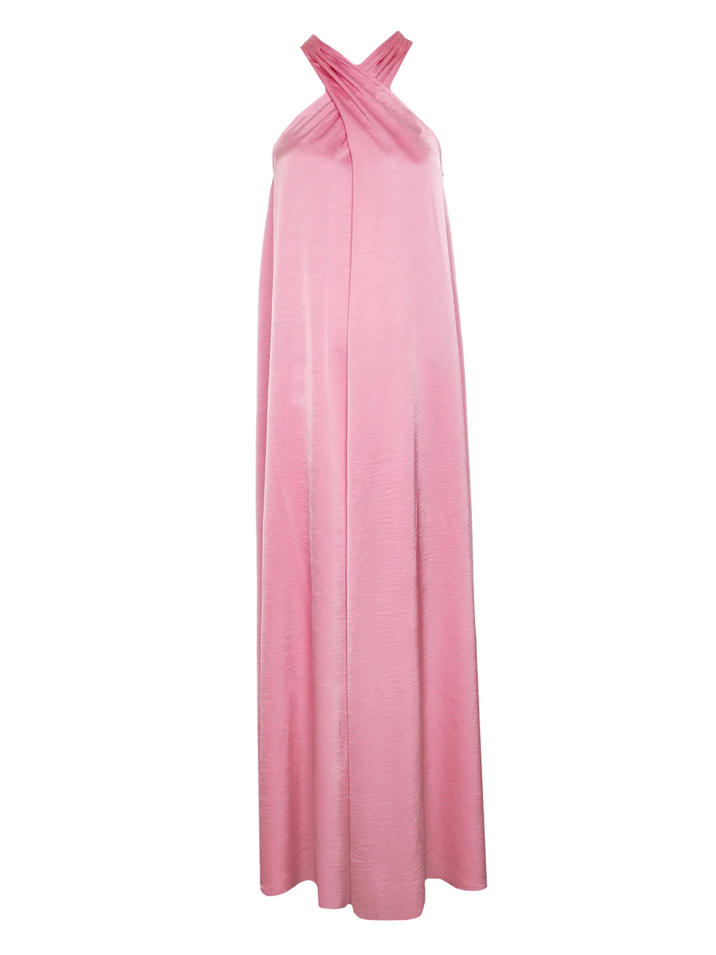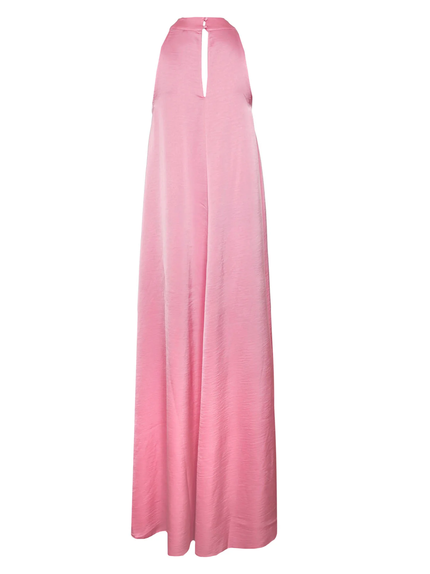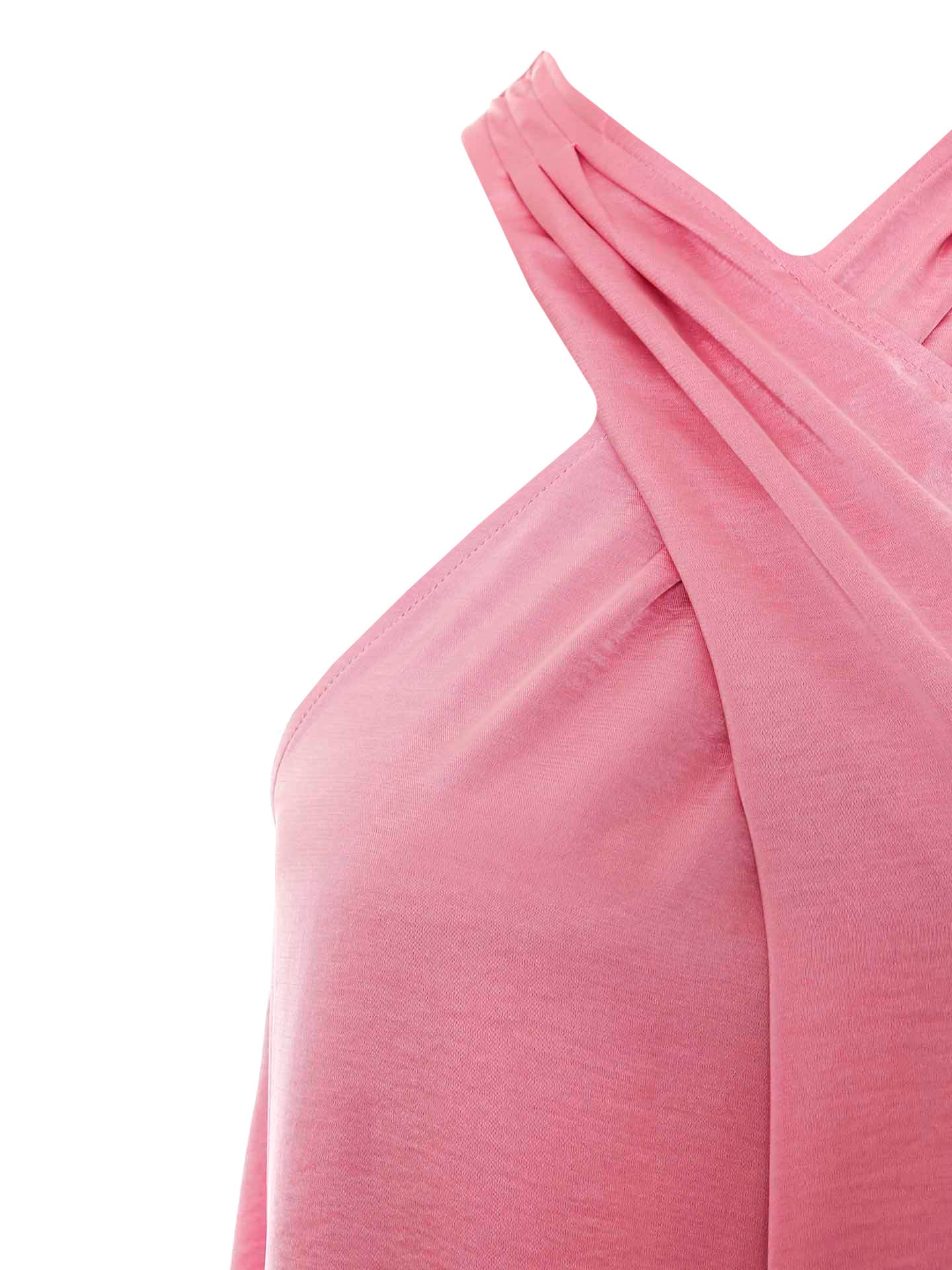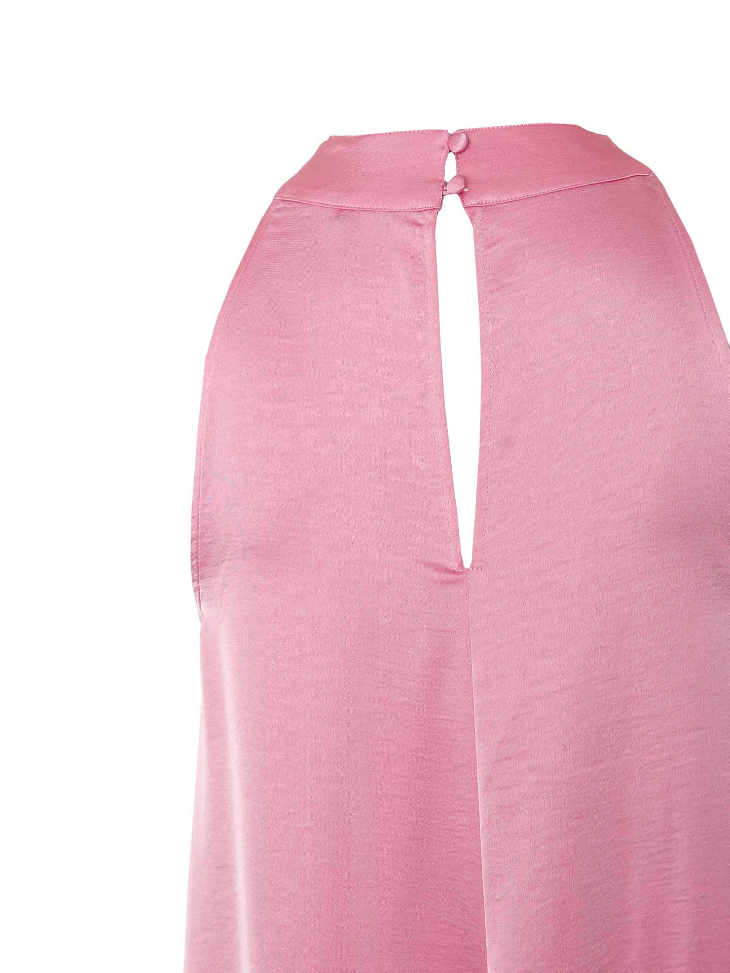 Ärmelloses Satinkleid mit Neckholder-Ausschnitt mit Knopfleiste*Gerader Schnitt*Eingesäumter Kleidabschluss