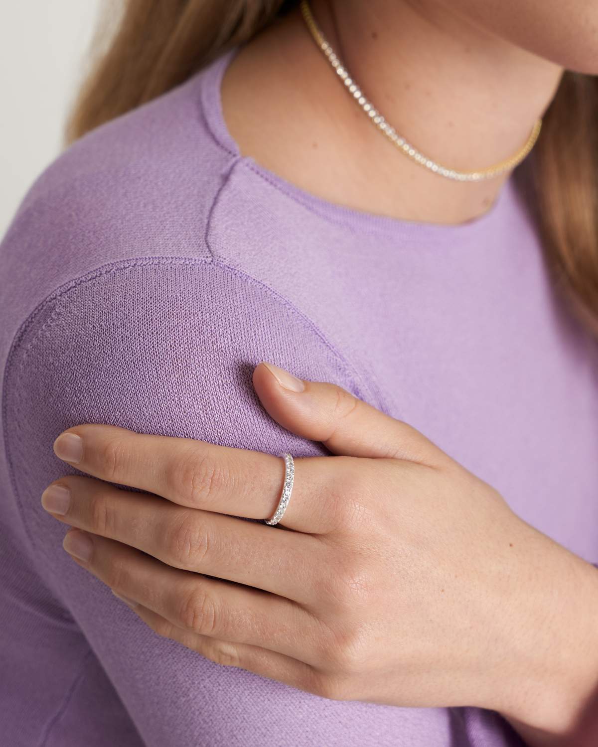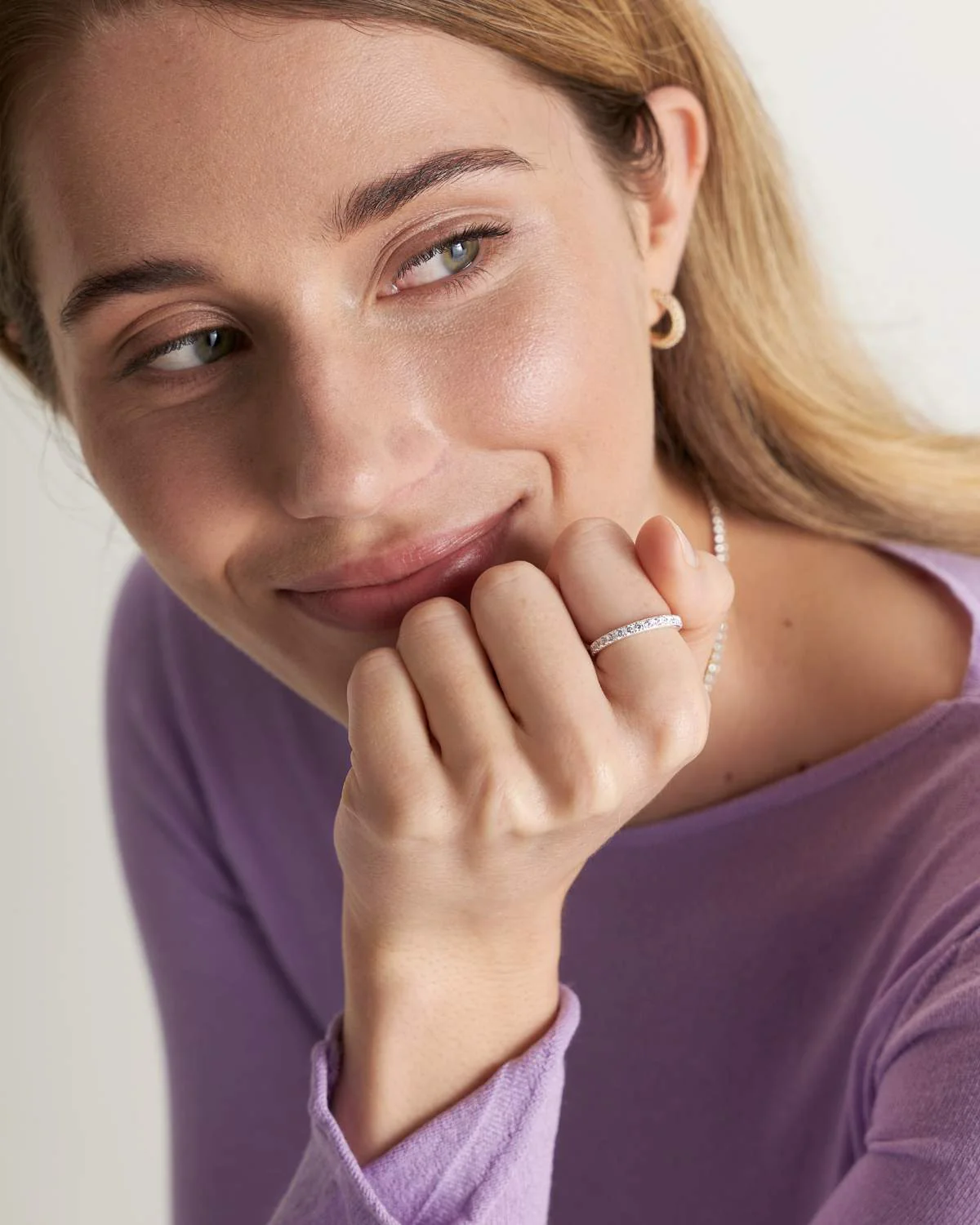 Wir stellen den neu entworfenen ‘Bling Ring’ von Luisa vor – der Gründerin & Designerin von OHH LUILU: ein zartes Schmuckstück mit Zirkoniasteinen, gefasst in 100% recyceltem Silber. Er ist leicht und perfekt für das tägliche Tragen geeignet und somit die perfekte Basis für jeden Ring Stack. Seine glatten Kanten und sein dezentes Design machen ihn zu einer eleganten Ergänzung für jeden Look, ob tags- oder abends! Mit seiner zeitlosen Eleganz und einzigartigen Qualität wird dieser Ring sicher ein Favorit unter Schmuckliebhabern werden.
