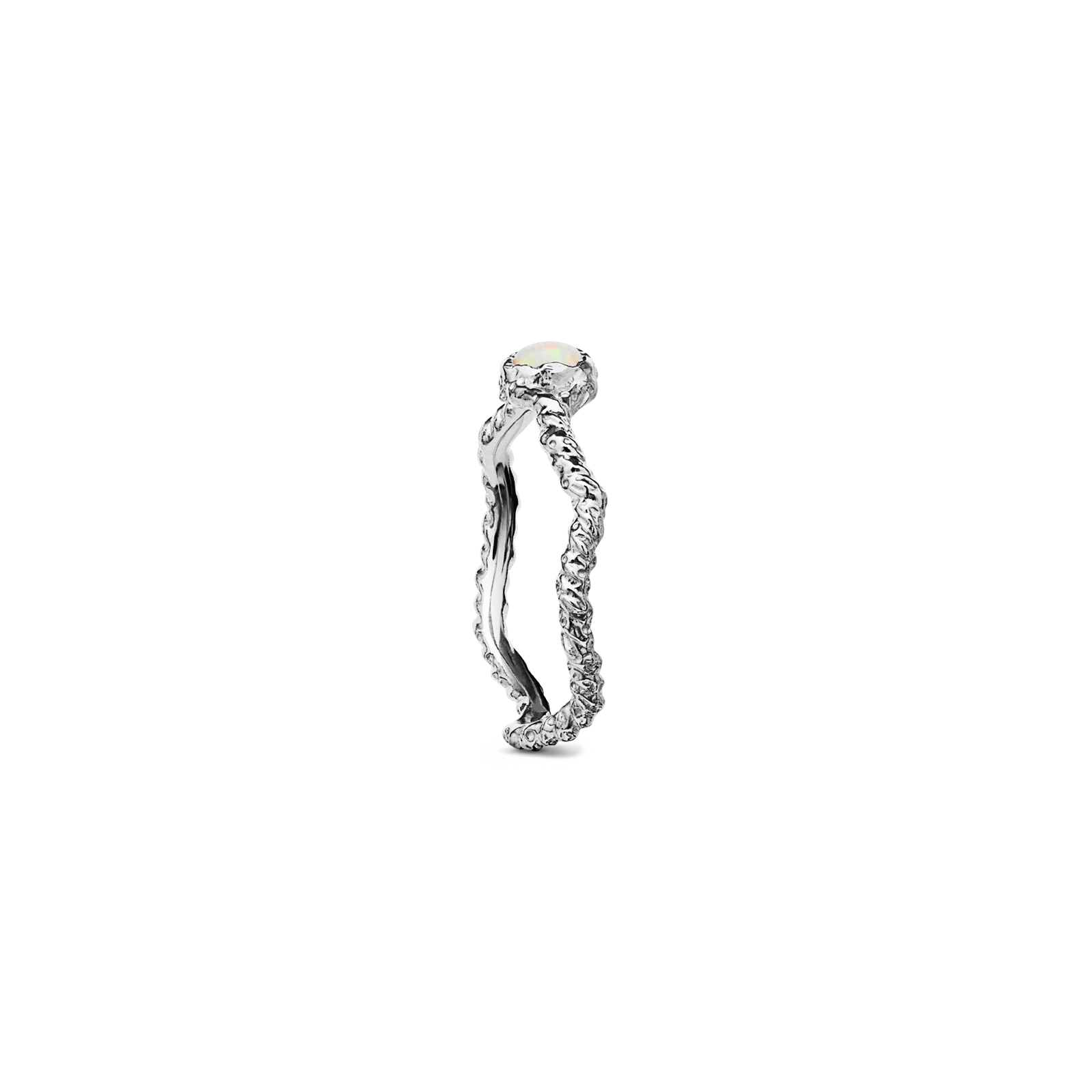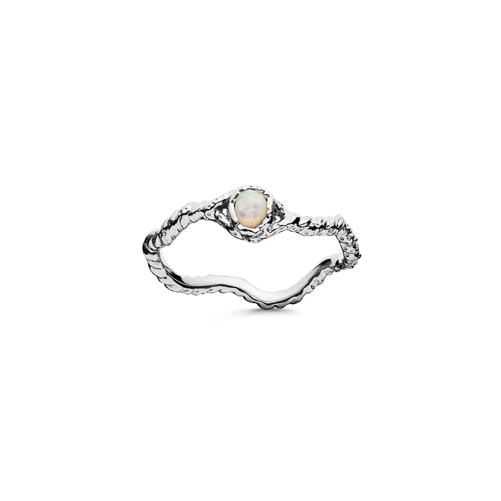 Der Ring Lisa hat eine wunderschön gedrehte und gewellte Textur, die mit dem funkelnden Opal verschmilzt.
