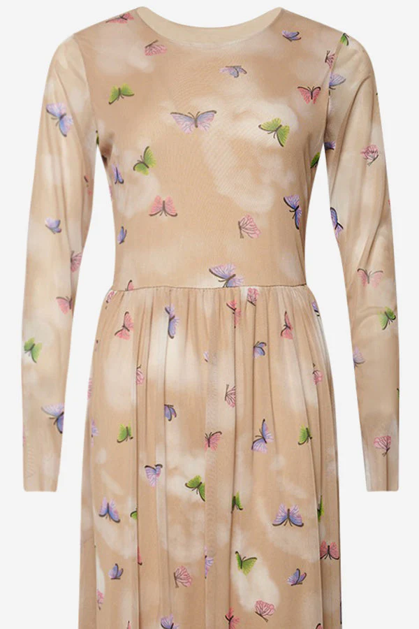 Lola Dress Sand Butterfly ist eines unserer beliebten Noella-Kleider, hier in einer schönen Farbe. Das Kleid ist aus 95% polyester, 5% elastan hergestellt und hat folgende Passform: Fit and flare.