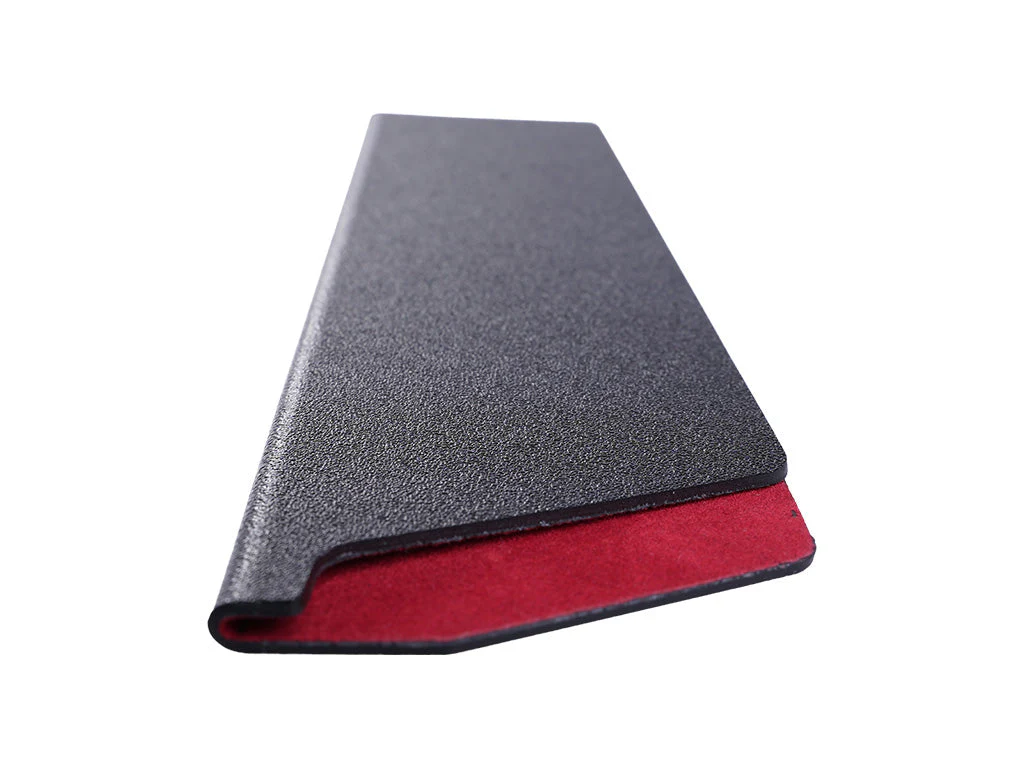 STILVOLLES DESIGN AUS SCHWARZEM POLYPROPYLEN MIT WEICHER ROTER INNENFLOCKUNG. ZWEI GRÖSSEN VERFÜGBAR, UM VERSCHIEDENE GRÖSSEN MESSER ZU PASSEN
