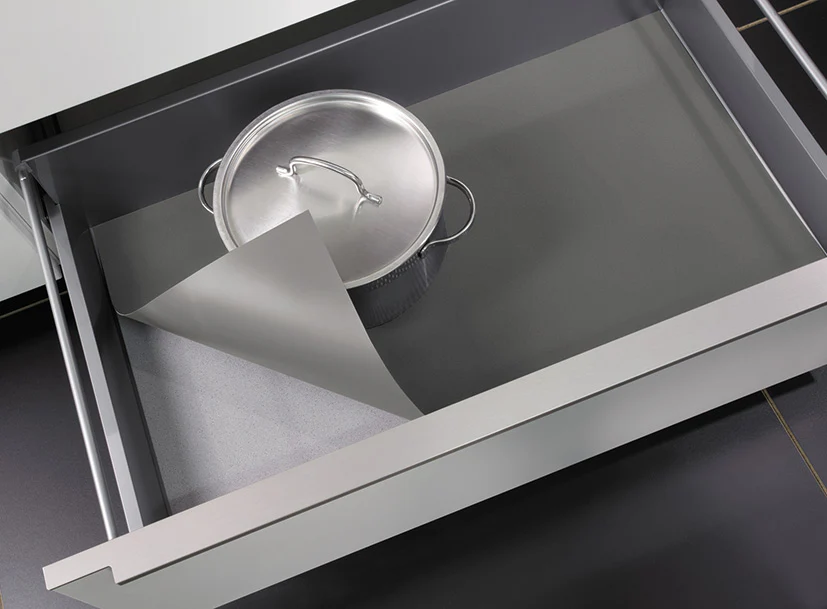 Die Schubladeneinlage Schubladenmatte für Küchenschränke und Schubladenböden kann auch problemlos für andere Schränke, Auszüge oder Innenauszüge zugeschnitten werden.
