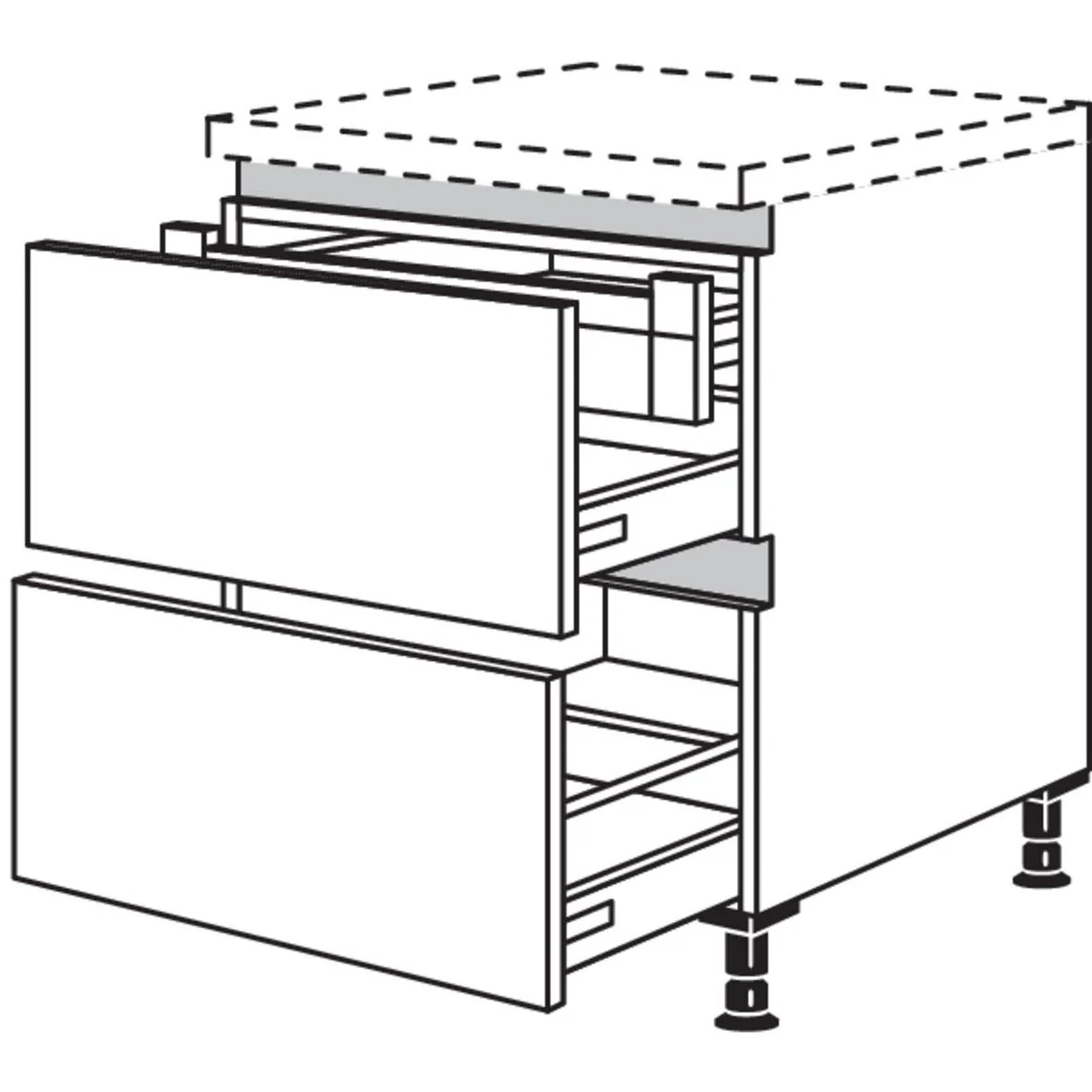 - 1 Innenschubkasten (hochwertige Auszugsdämpfung Silent System / Soft-Close von Hettich) mit Mitnehmer
