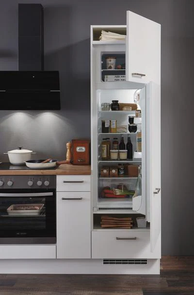 - 1 x nobilia Hochschrank 60cm weiß 2 Türen 1 Einlegeboden Geräteumbau für Kühlschränke Küchen-Hochschrank, Anschlag: Links