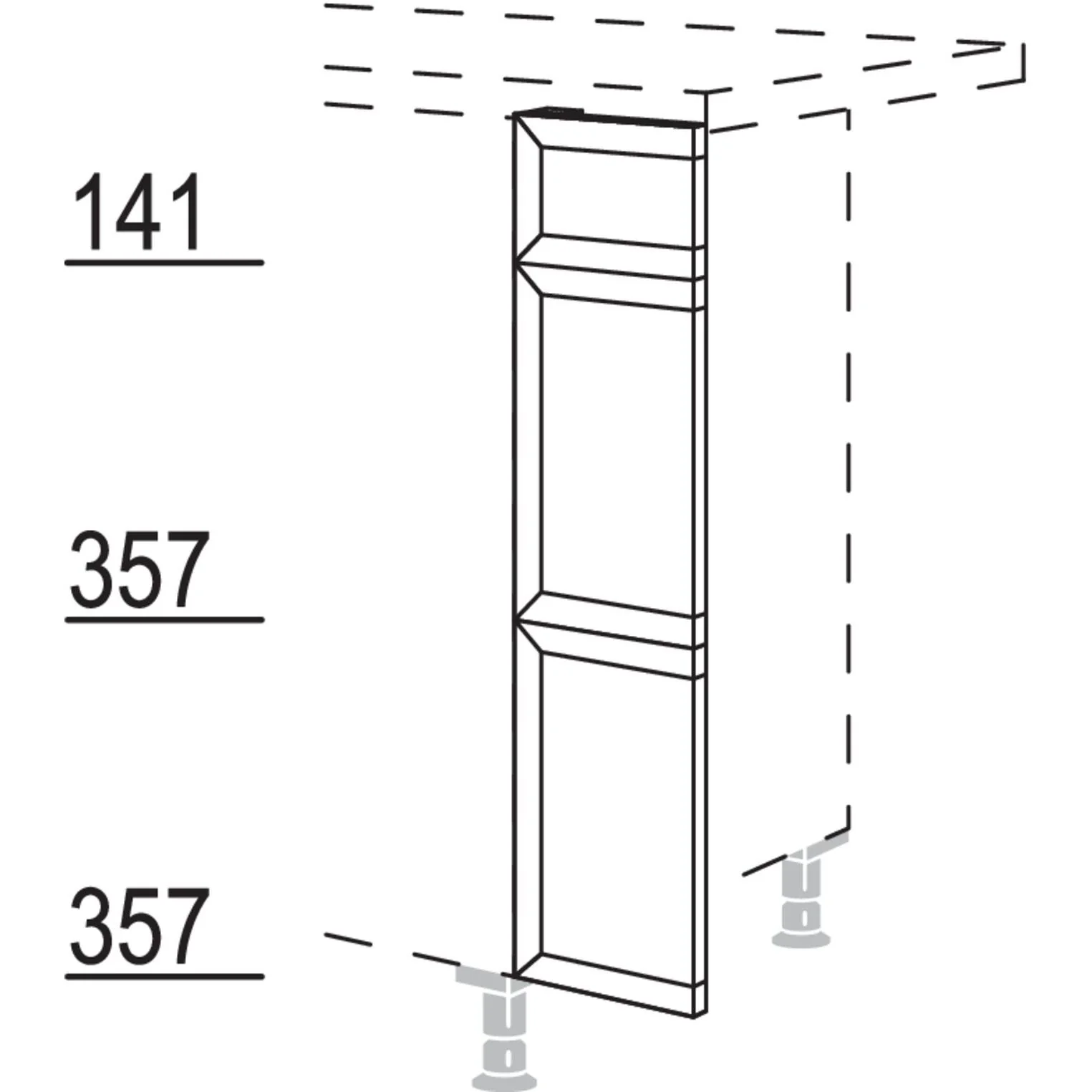 Das Maxi-Frontpassstück besticht durch seine geteilte Optik, die nicht nur ästhetisch ansprechend ist, sondern auch funktional überzeugt. Dank der Möglichkeit zur bauseitigen Anpassung bis auf ein Mindestmaß von 30 mm, können Sie es individuell an Ihre Küchenbedürfnisse anpassen. Dies gewährleistet, dass selbst bei unebenen Wänden oder speziellen Raumanforderungen eine perfekte Passform erreicht wird.