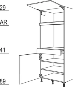 Die Tür des Geräte-Umbaus verfügt über Automatik-Topfscharniere mit Türdämpfer und Soft-Close Funktion, was für ein angenehmes Öffnen und Schließen der Tür sorgt. Zwei Einlegeböden bieten ausreichend Platz für Ihre Küchenutensilien und -geräte.