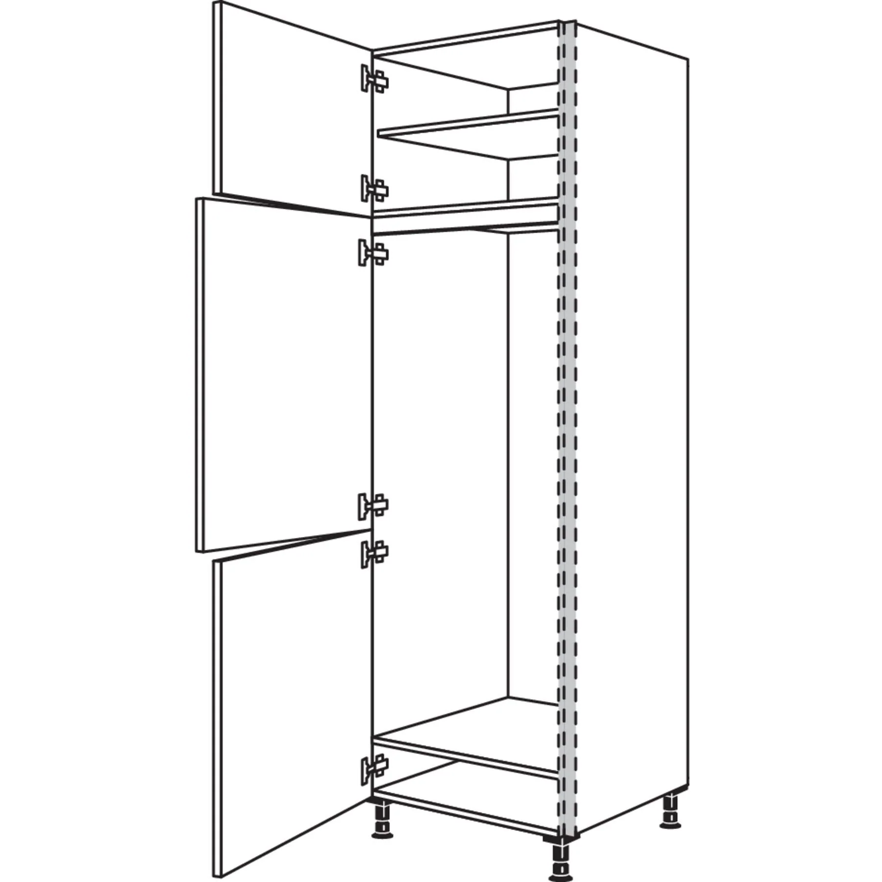 Der nobilia XL-Geräte-Umbau Kühl-Gefrierautomat ist die perfekte Lösung, um Ihren großen Kühlschrank und Gefrierschrank stilvoll zu integrieren. Mit einer Nischenhöhe von 1450 mm bietet dieser Schrank genügend Platz für Ihre XL-Geräte.