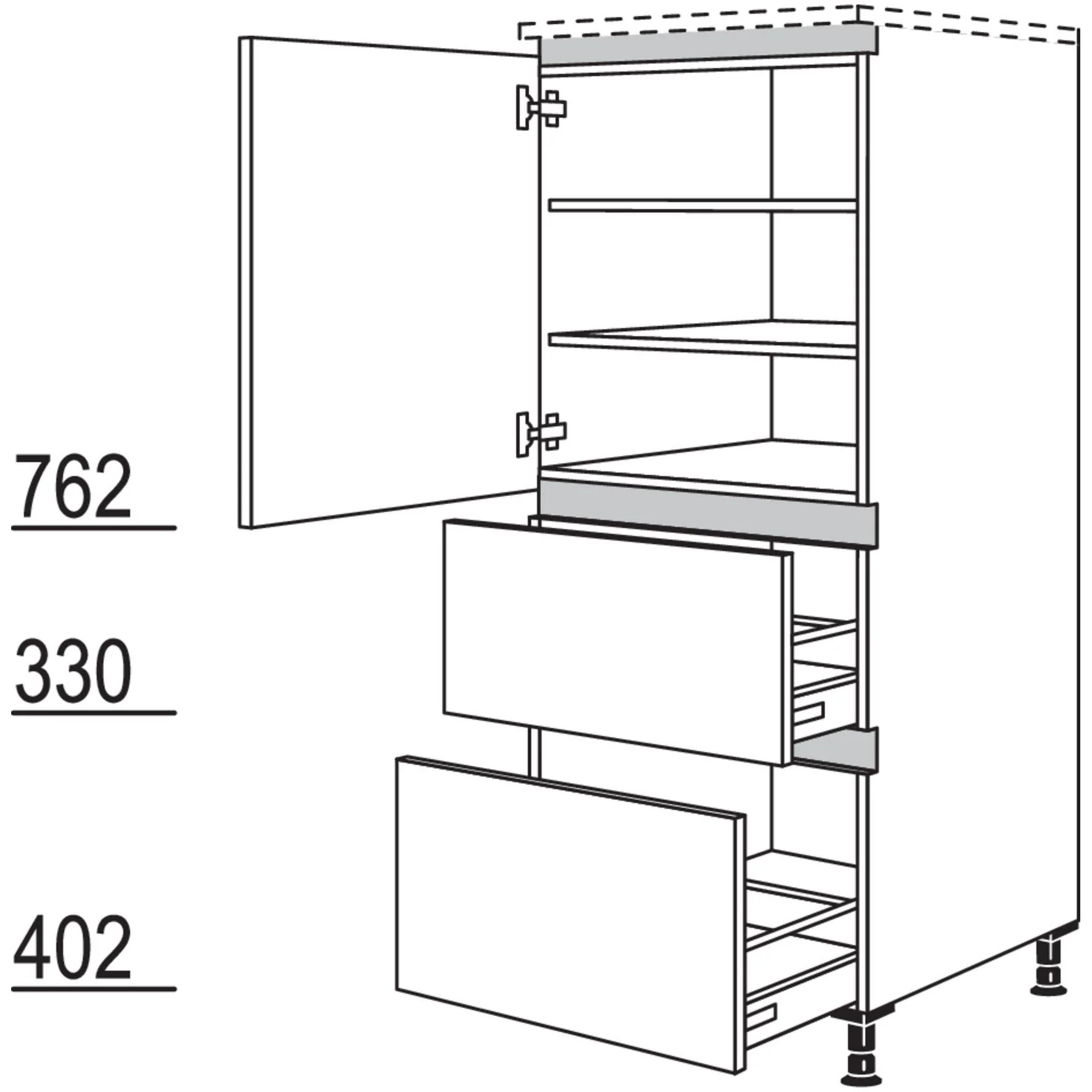 - Schrank mit Auszug und Licht