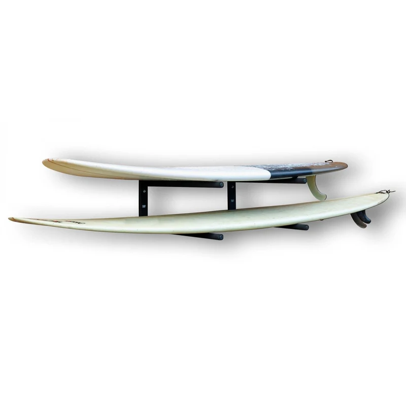 Die aus hochwertigem Aluminium gefertigten, mit EVA-Schaum beschichteten Surfboard-Racks, die auf Präzision ausgelegt sind, sollten ein Leben lang halten. Das Northcore-Doppelrack kann an der Wand montiert werden (Befestigungen sind im Lieferumfang enthalten), entweder vertikal für die horizontale Surfboardlagerung oder horizontal an der Wand montiert, um die Boards vertikal anzulehnen.