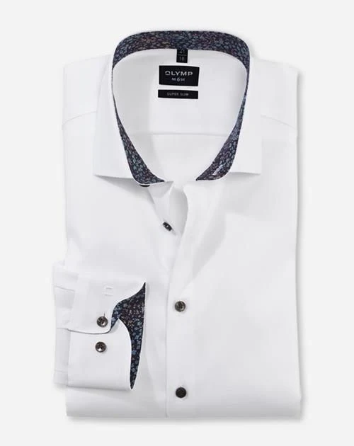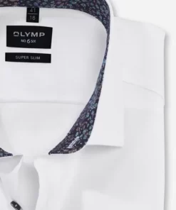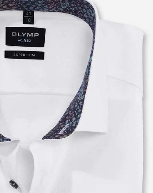 Ein einfarbiger modischer Allrounder mit feiner Webstruktur – OLYMP No. Six für den superschlanken Geschäftsmann. Feine Garnausspinnungen aus Baumwolle und Elastolefin sorgen für das bewährte Comfort-Stretch-Feeling aus Bewegungsfreiheit und knitterfreie Formstabilität. Der sportive Modern Kent mit softer Krageneinlage folgt dem ästhetischen Konzept der agilen Linienführung. Pflege- und bügelleicht, in Weiß.