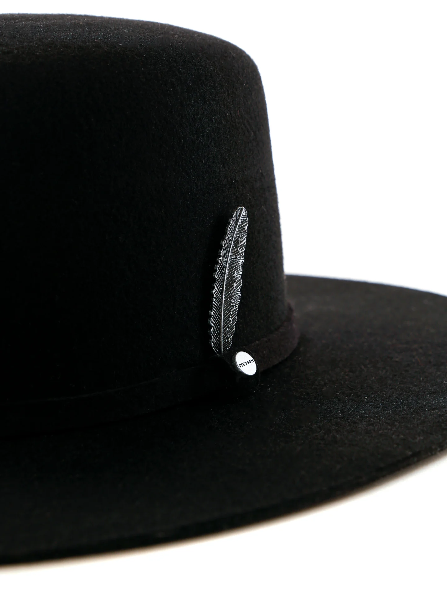 Breitkrempiger Wollfilzhut,Seitlicher Metall-Federschmuck und elegantes Garniturband,Huthöhe: 10 cm, Breite der Krempe: ca. 7 cm