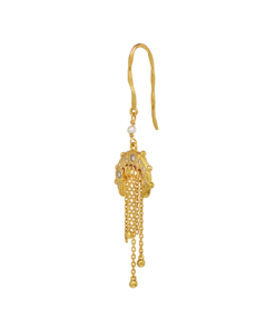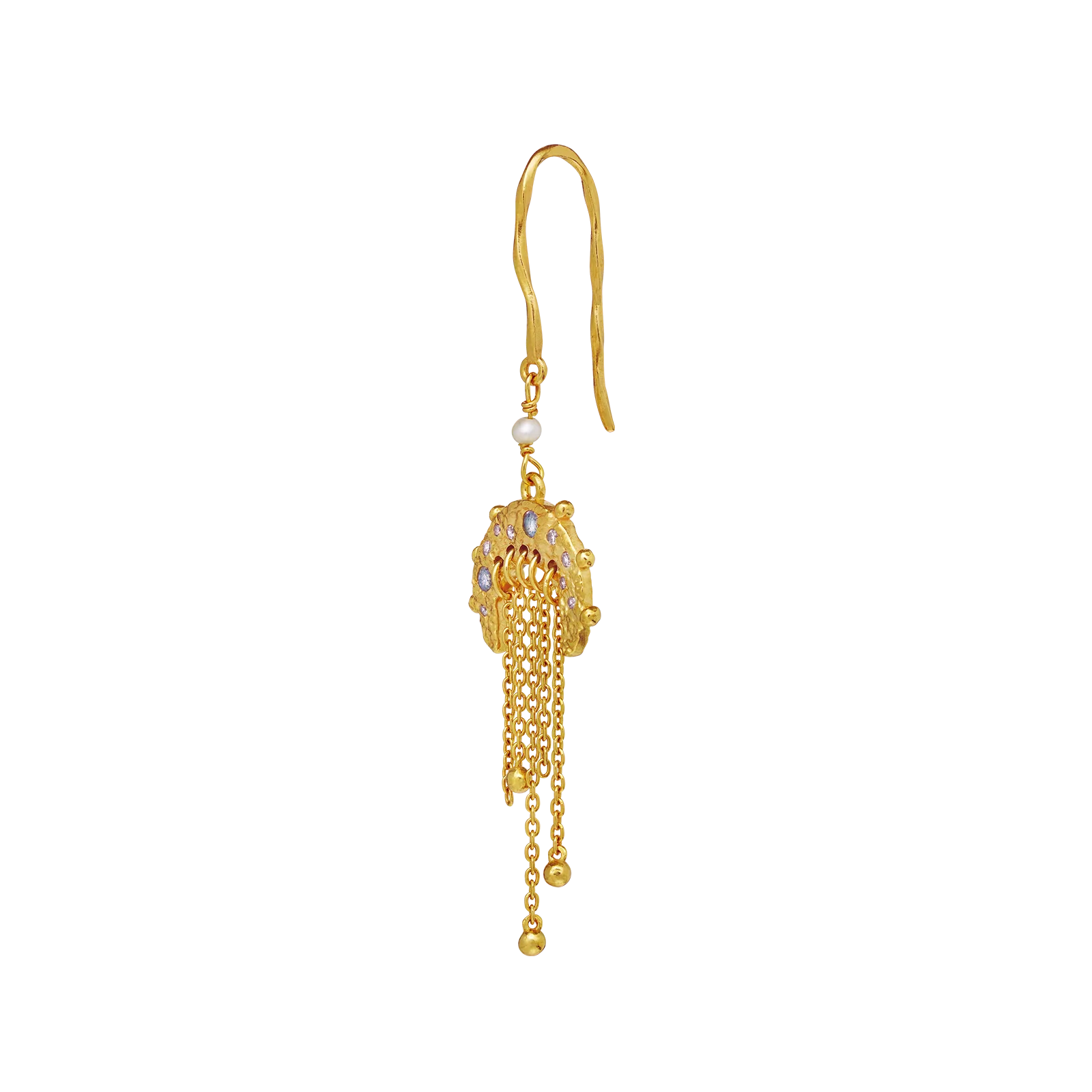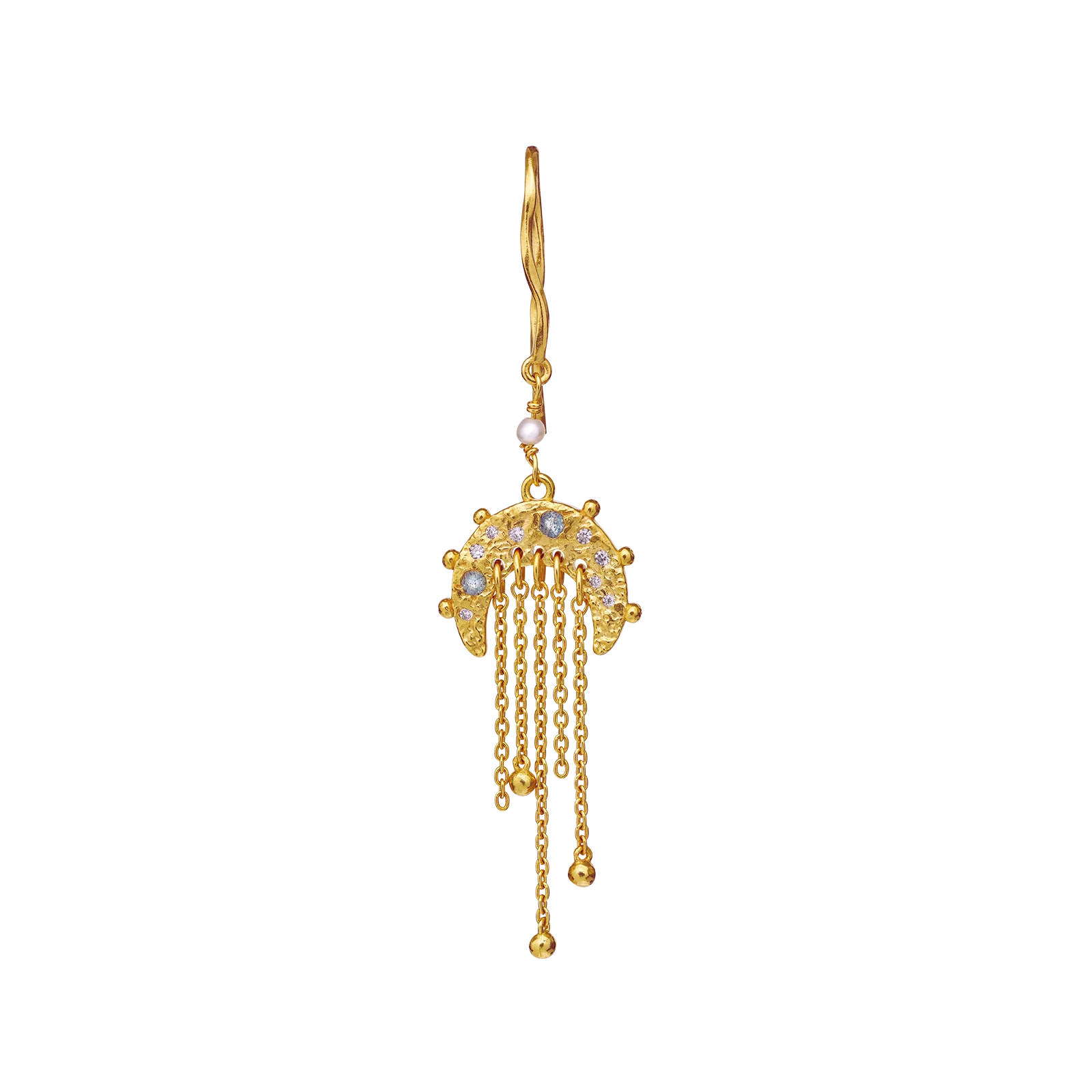 Der extravagante Paloma Einzel-Ohrring hat eine strukturierte Oberfläche und eine schöne Zusammenstellung von Steinen und Süßwasserperlen, während die Halbmondform Veränderung und Transformation symbolisiert.