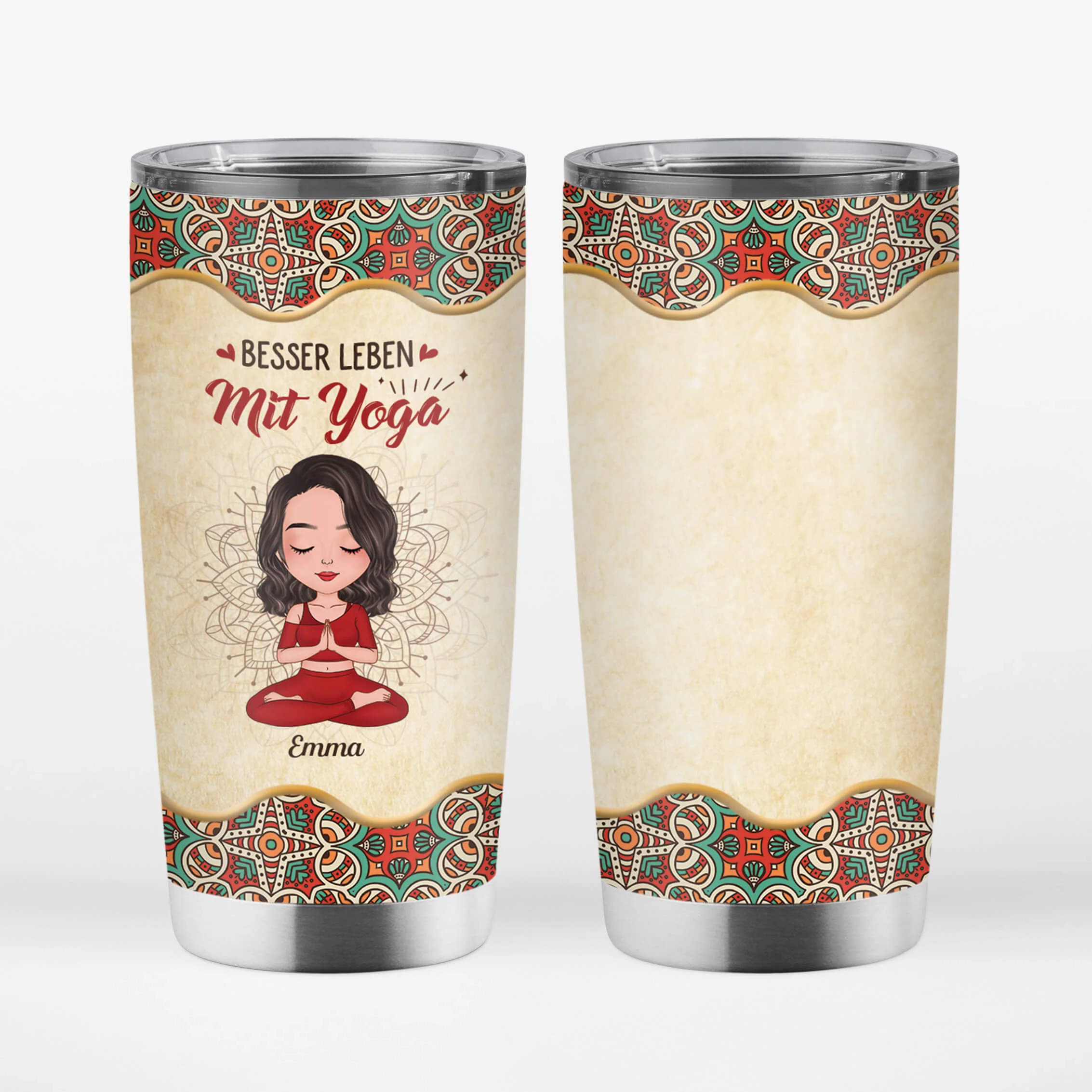 Genießen Sie Ihren Lieblingstee oder Kaffee mit dem personalisierten “Besser Leben Mit Yoga” Thermobecher, einem stilvollen Accessoire für Ihre spirituelle Reise. Dieser Thermobecher ist nicht nur praktisch für unterwegs, sondern auch eine tägliche Erinnerung an die heilende Kraft des Yoga. Mit einem individuellen Design verleiht er Ihrem Getränk eine persönliche Note und bringt Harmonie in Ihren Tag. Ob als Geschenk für einen Yoga-Enthusiasten oder als selbstbelohnendes Accessoire, dieser Thermobecher erzählt die Geschichte eines bewussteren Lebens. Holen Sie sich jetzt Ihren personalisierten “Besser Leben Mit Yoga” Thermobecher und erleben Sie die Fusion von Stil und Spiritualität!