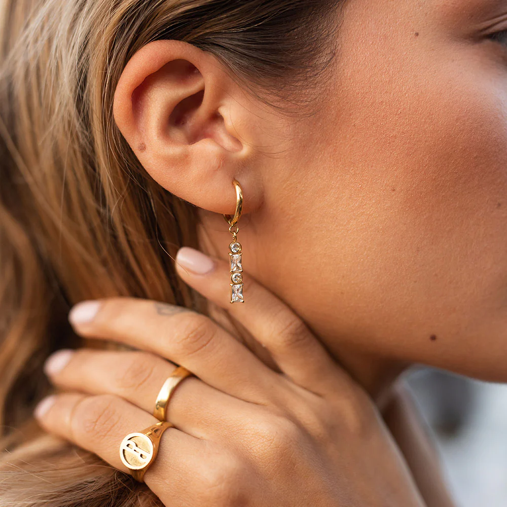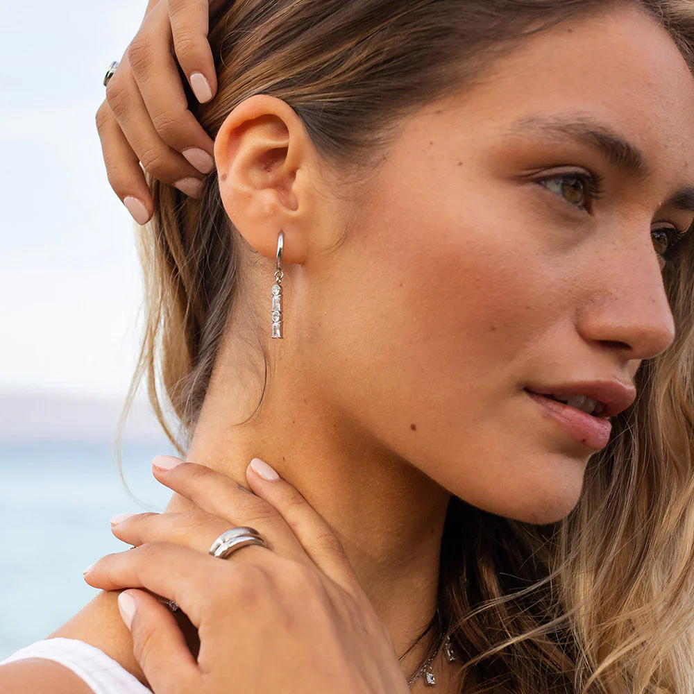 Im Design der ausdrucksstarken Powder Ohrringe steckt besonders viel Liebe: Funkelnde Schmuckstein-Ketten, angebracht an glänzende Creolen, zeichnen dieses elegante Accessoire aus.