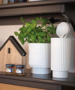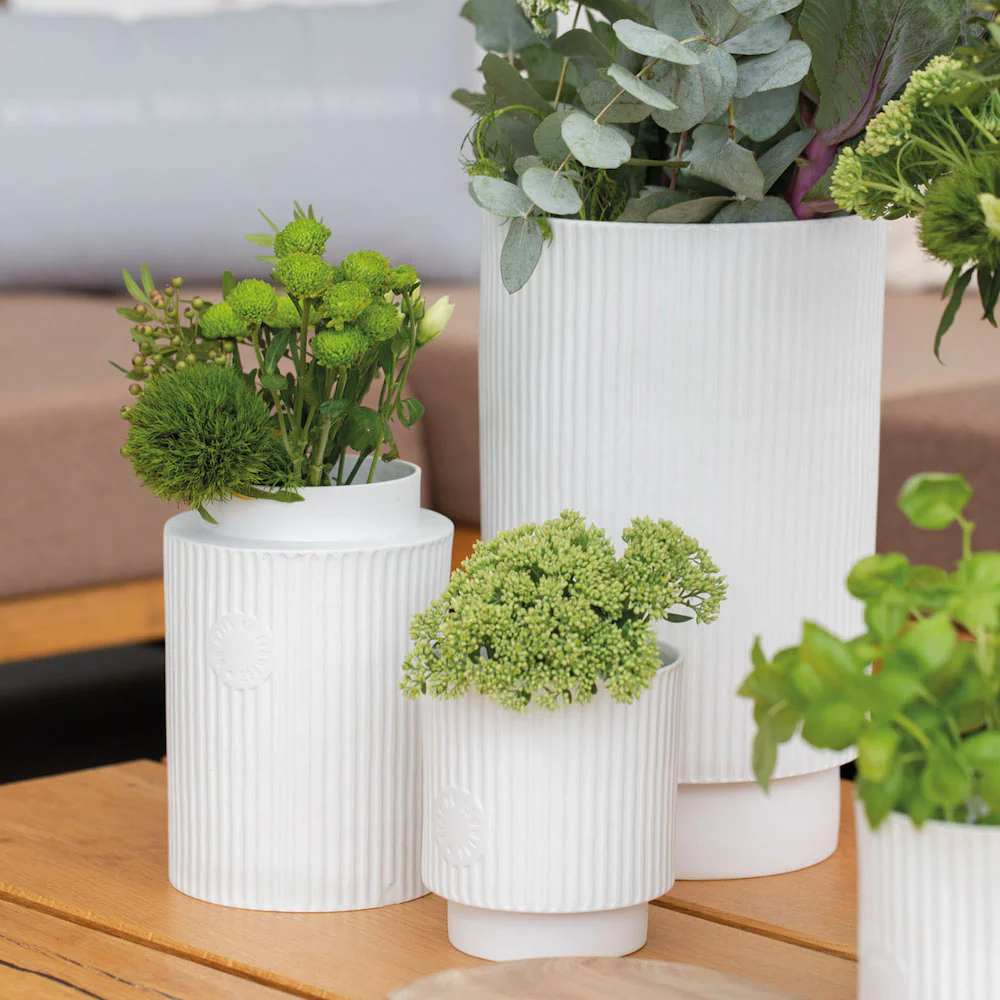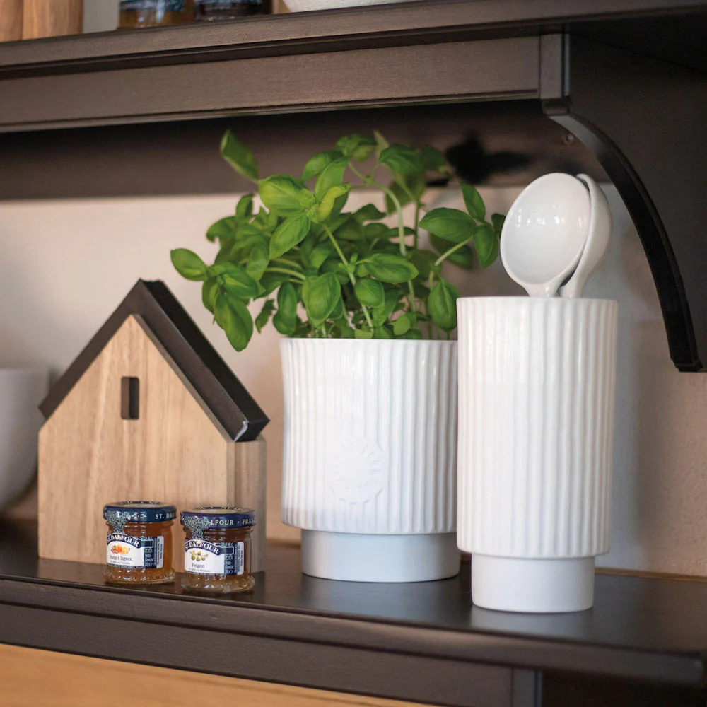 Jetzt kannst Du ganz stolz alles aus Deinem Garten mit dem Räder Hausfreunde Übertopf „Eigener Anbau“ präsentieren. Das Streifenrelief an den Seiten wird durch den schmaleren Sockel an der Unterseite abgerundet und verleiht der Vase ihren besonderen Charakter. Insgesamt misst der Übertopf aus Porzellan 14,5 cm in der Höhe und 13,5 cm im Durchmesser.
