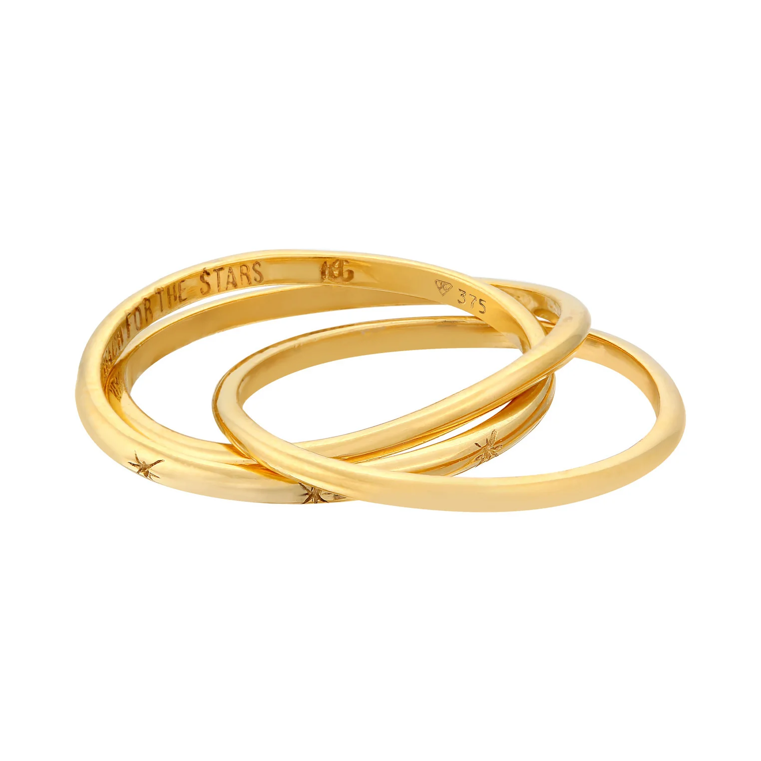 Dieser wundervolle handgefertigte Trinity Ring ist aus solidem Gold gefertigt und ist der perfekte Start deiner Erbstück Sammlung. Dieser Ring hält für die Ewigkeit und soll Generationen Freude bereiten. Die Worte „Reach For The Stars“ (Greife nach den Sternen) sind auf der Innenseite des Rings eingraviert. Kleine Sterne zieren die Aussenseite des Rings.