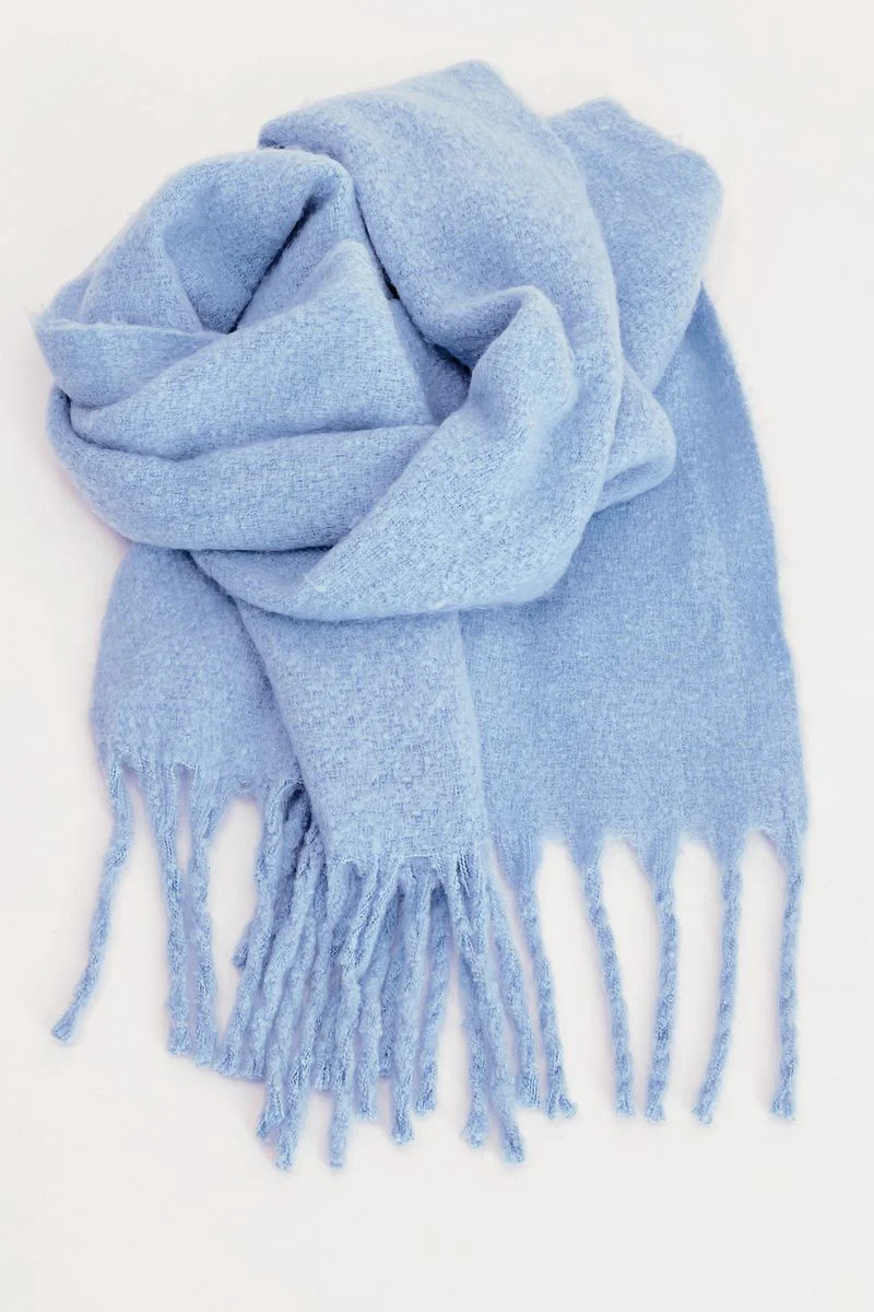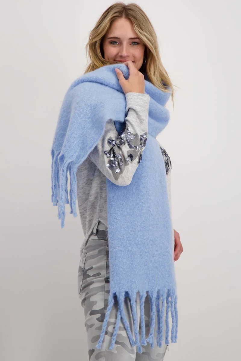 Für ein wohliges Tragegefühl sorgt die flauschige Haptik dieses dicken Schals. Die Enden sind mit langen Fransen versehen.