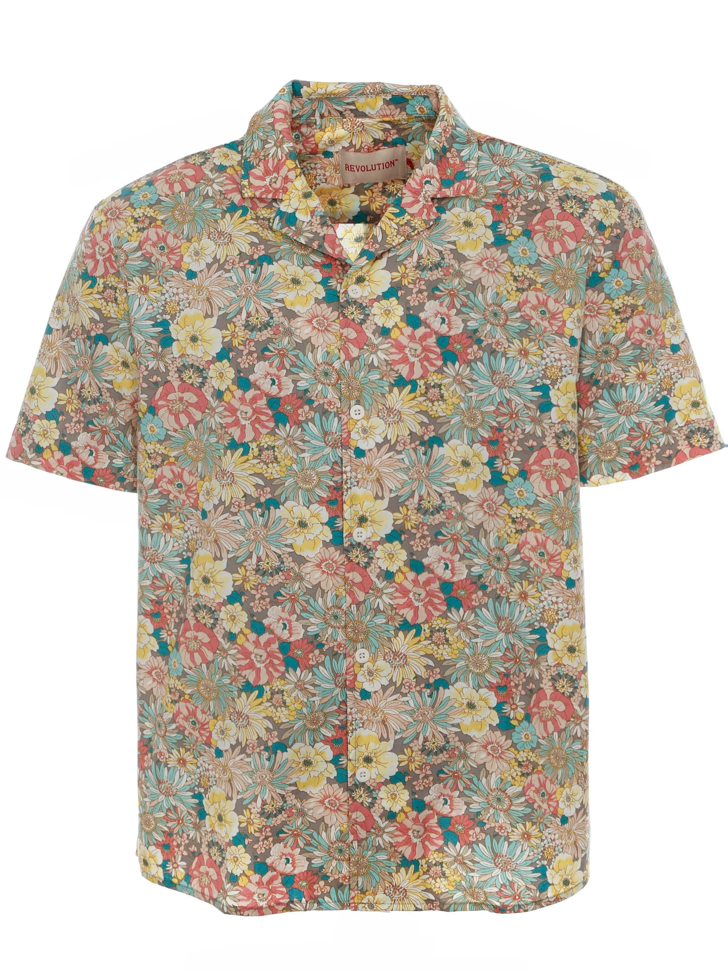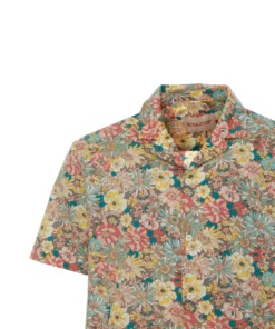 Kurzarmhemd mit All-Over Flower Print*Kubanischer Kragen*Verlängerte abgerundete Rückenpartie*Normale Passform*Länge: Hüftlang