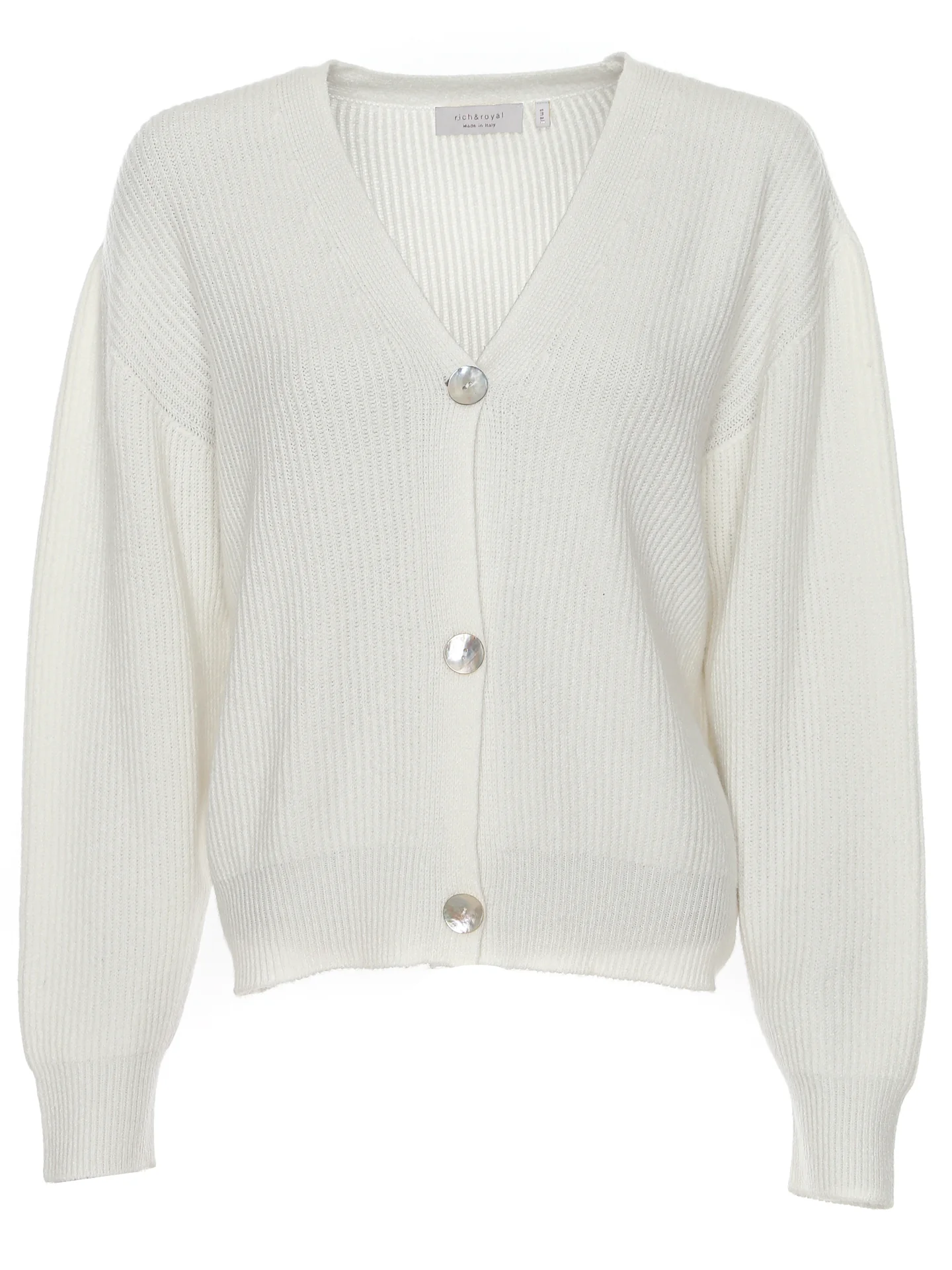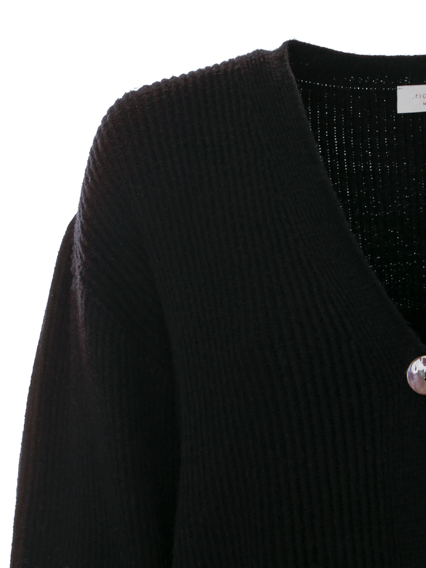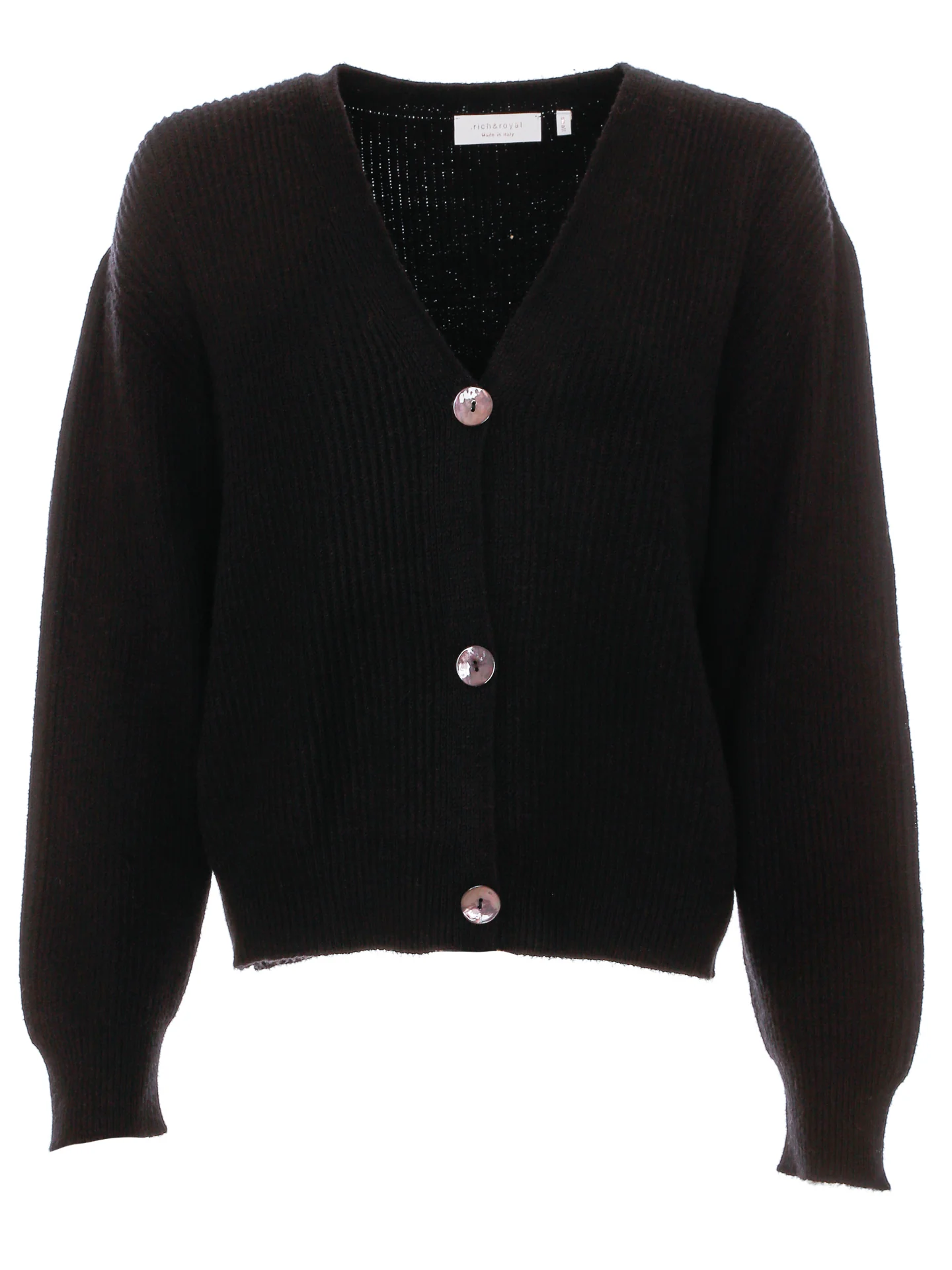 Strickcardigan mit V-Ausschnitt,3-knöpfiger Verschluss,Ripp-Struktur,Rippbündchen am Ausschnitt sowie an den Ärmelenden und am Saum,Überschnittene Schultern,Leicht verlängerte Rückenpartie,Lässige Passform,Länge: Hüftlang