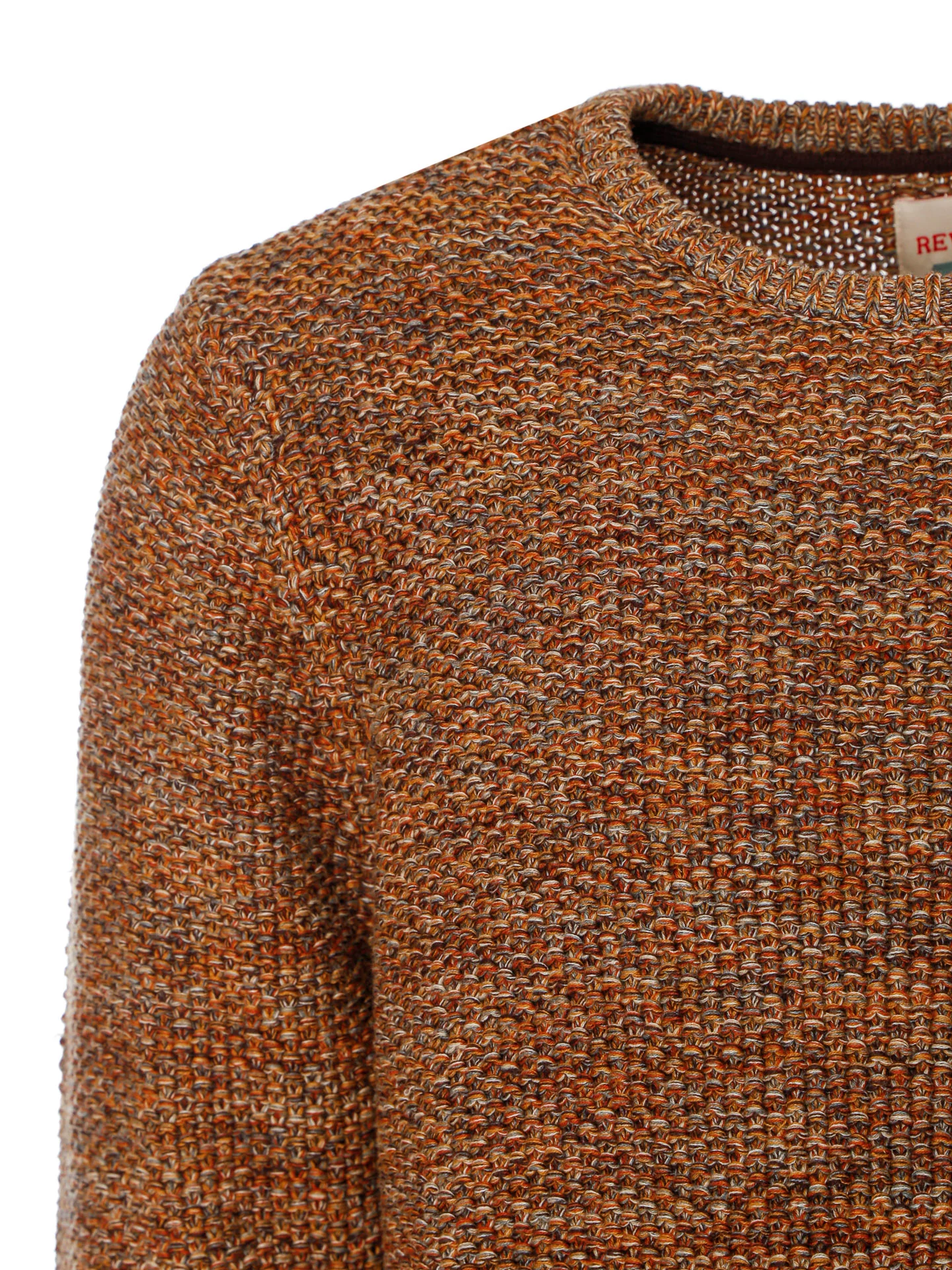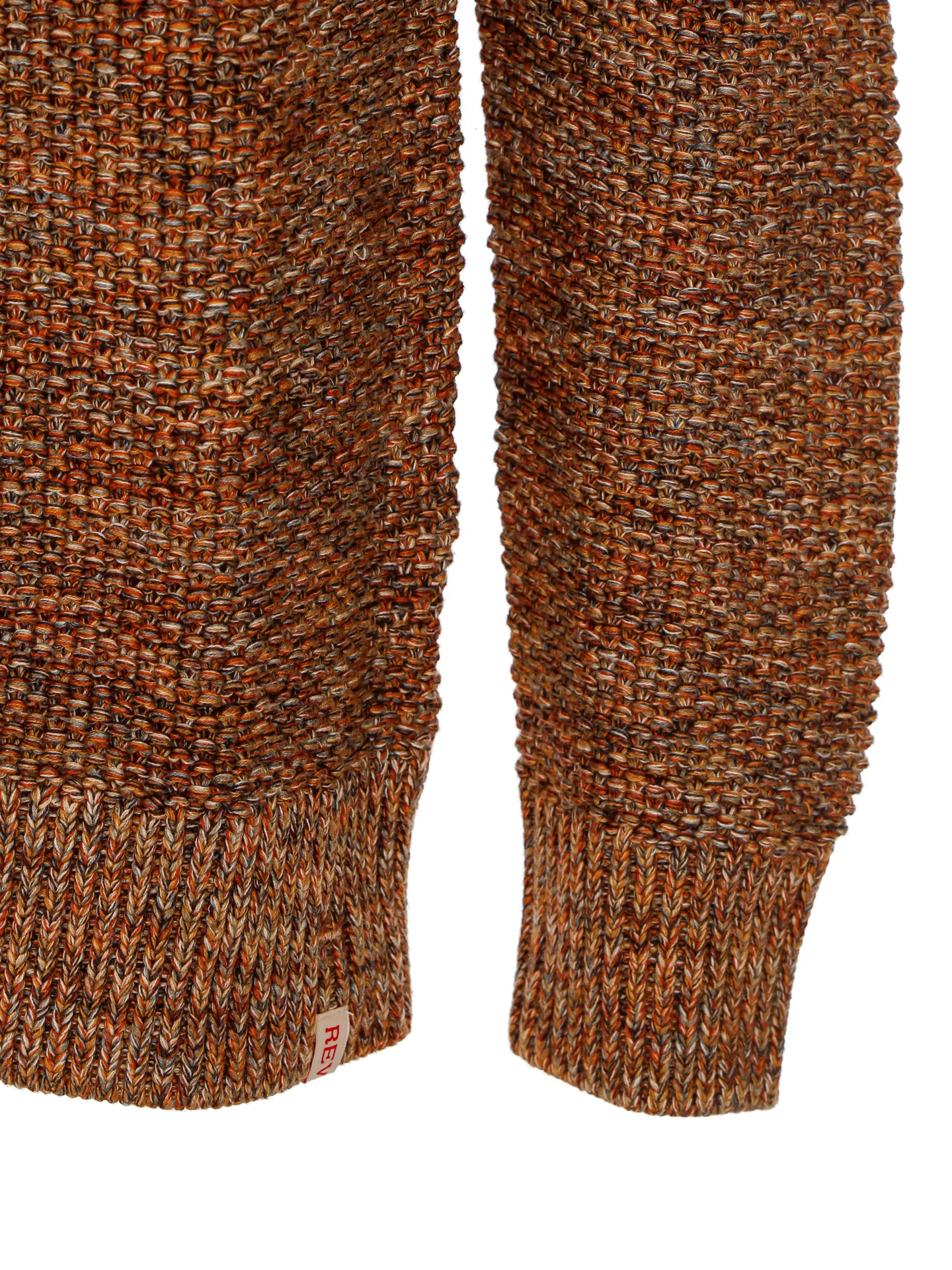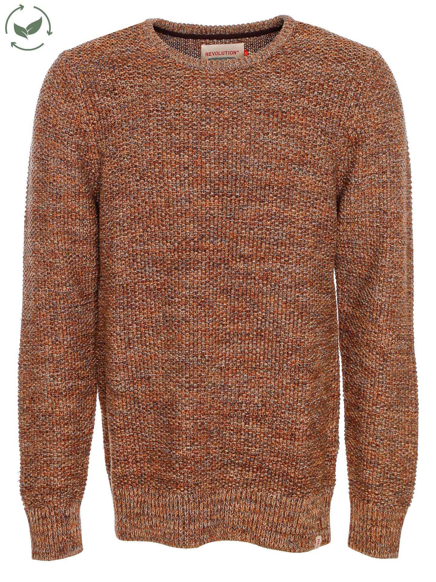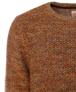 Grobgestrickter Pullover in Perlstrick-Struktur mit Rundhalsausschnitt,Rippbündchen am Ausschnitt sowie an den Ärmelenden und am Saum,Mehrfarbiger Baumwollgarn in Erdtönen,Leicht transparent,Kleine Label-Flag am Saum links,Normale Passform,Länge: etwa Hüftlang
