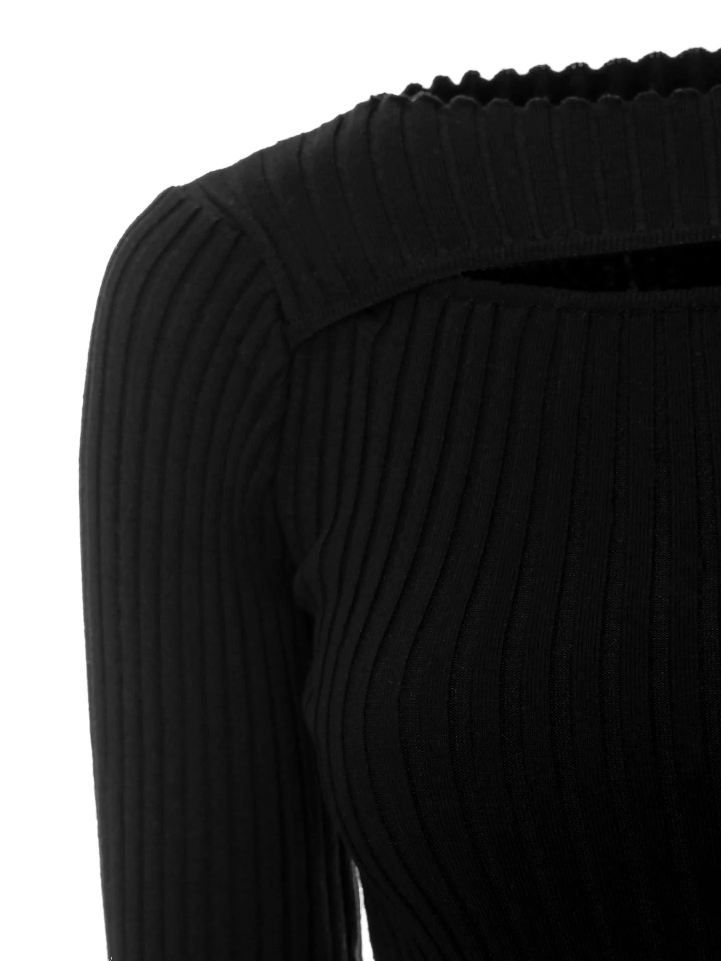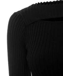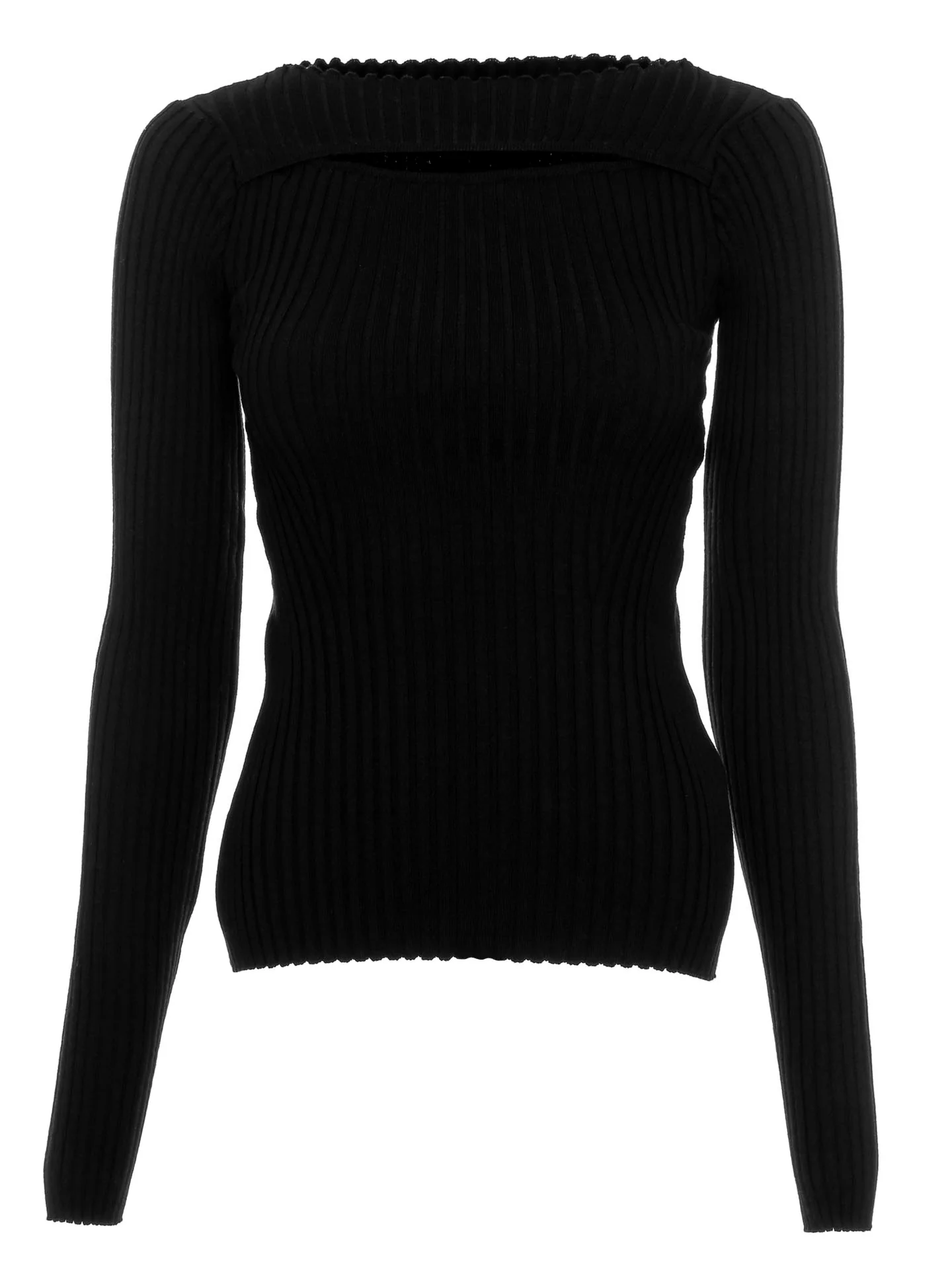 Enganliegende geripptes Stricktop mit einem Rundhalsausschnitt sowie angenehmer Stretch-Anteil*Aus einer Baumwoll-Elasthan-Mischung gefertigt*Elegantes Cut-Out-Detail über der Brust*Sehr lange schmale Ärmel*Offener Saum am Ausschnitt sowie an den Ärmel und am Saumende*Formnähte auf beiden Seiten von der Brust bis zum Bauchnabel sowie auf der Rückseite*Softe Haptik*Taillierte Schnitt*Enge Passform*Länge: etwa hüftlang