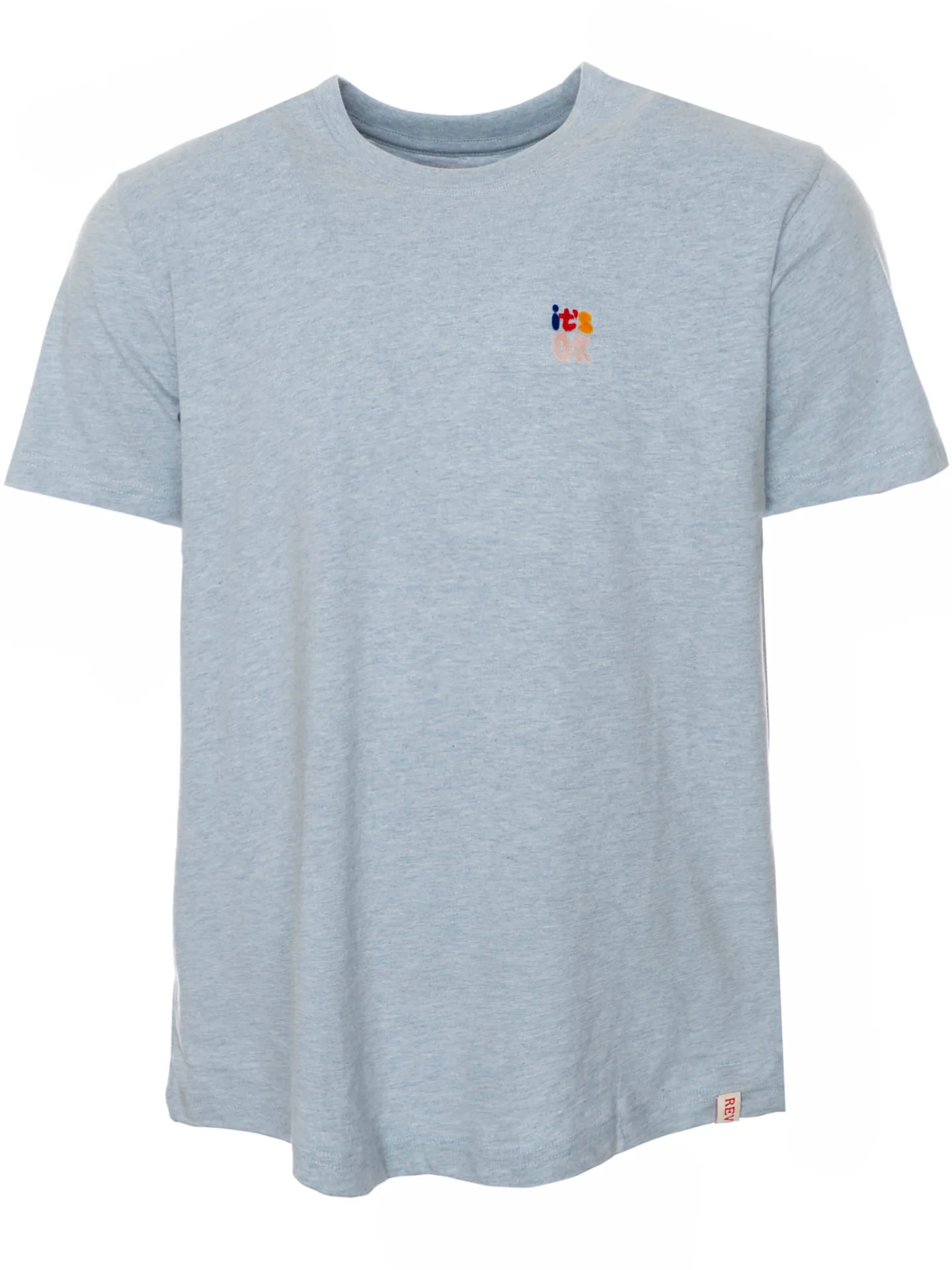 T-Shirt mit geripptem Rundhalsausschnitt*Kleine Applikation auf der linken Brust*Label-Tag am Saumabschluss*Melierte Optik*Softe Haptik*Gerader Schnitt sowie lockere Passform*Länge: hüftlang